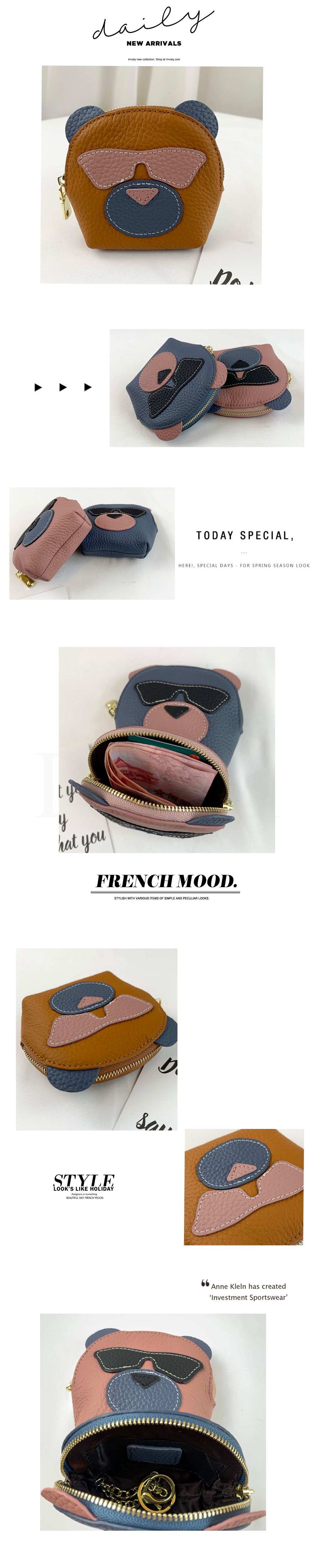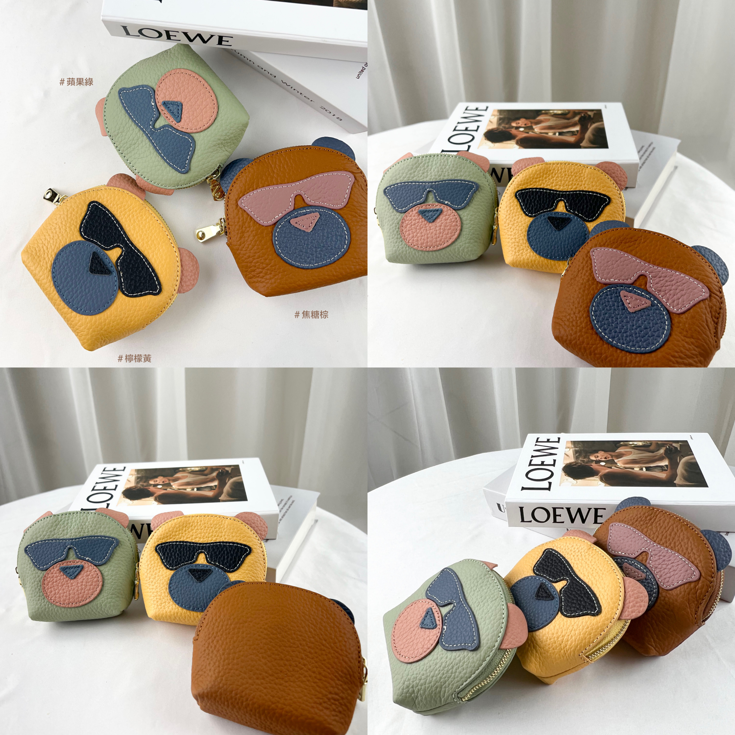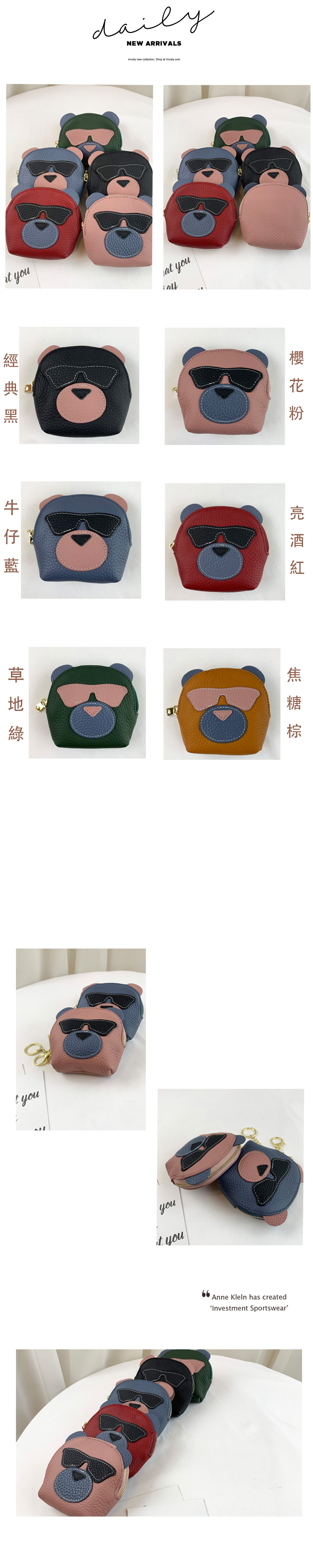 韓國墨鏡小熊 真皮零錢包 #2206