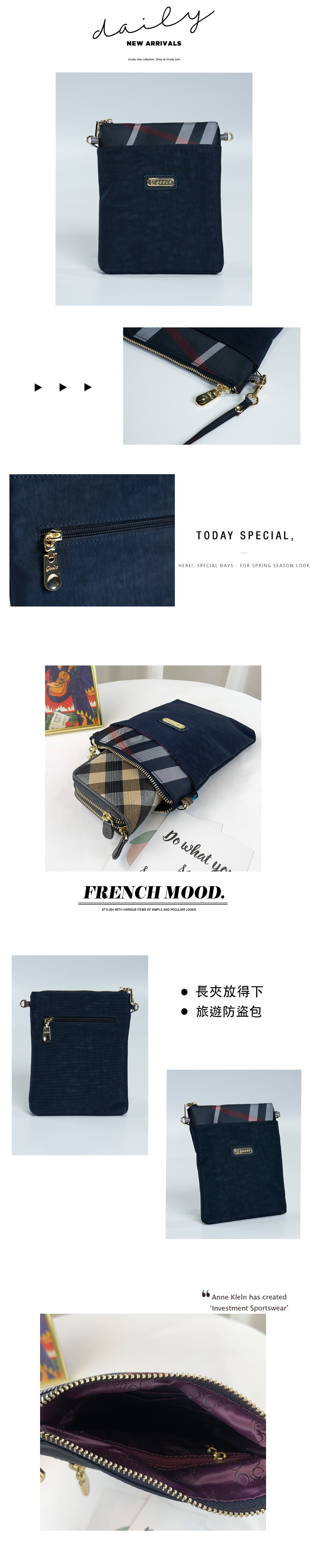 GOODS 水洗藍拼接細格 單層手機側背包 #2231