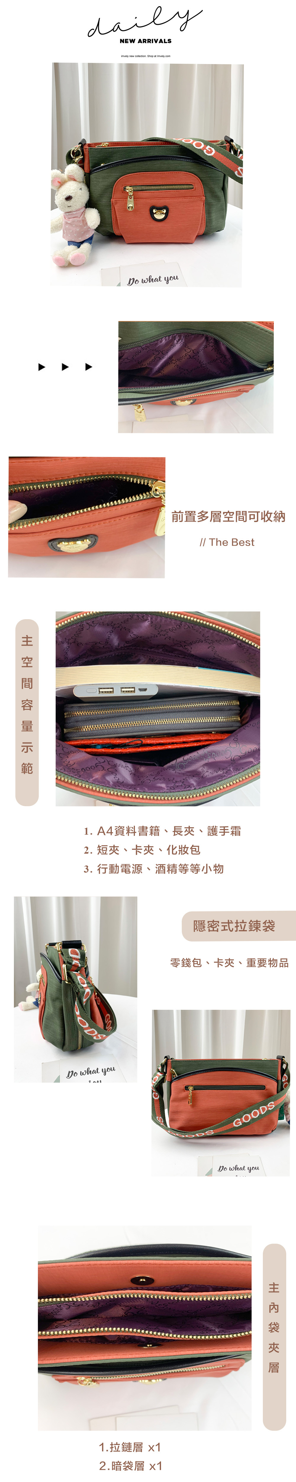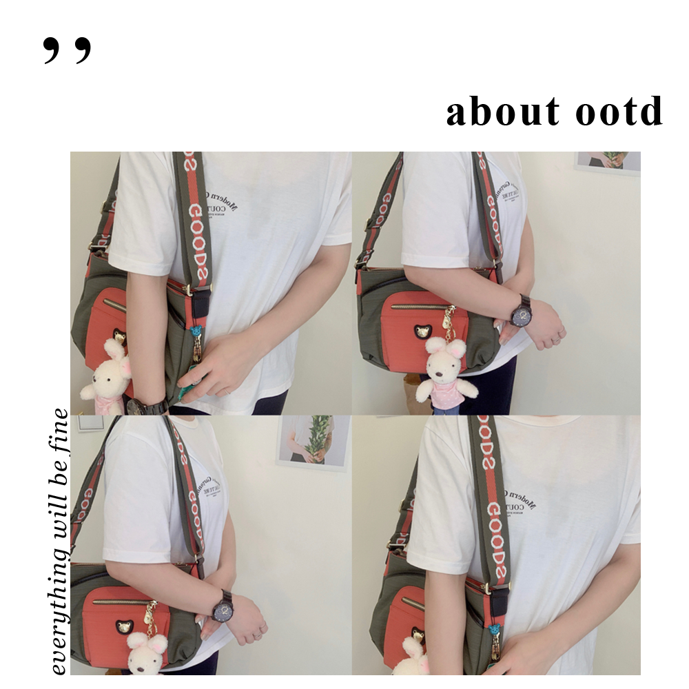 GOODS 橘綠拼色 防潑水側背包 附小熊吊飾 #2237