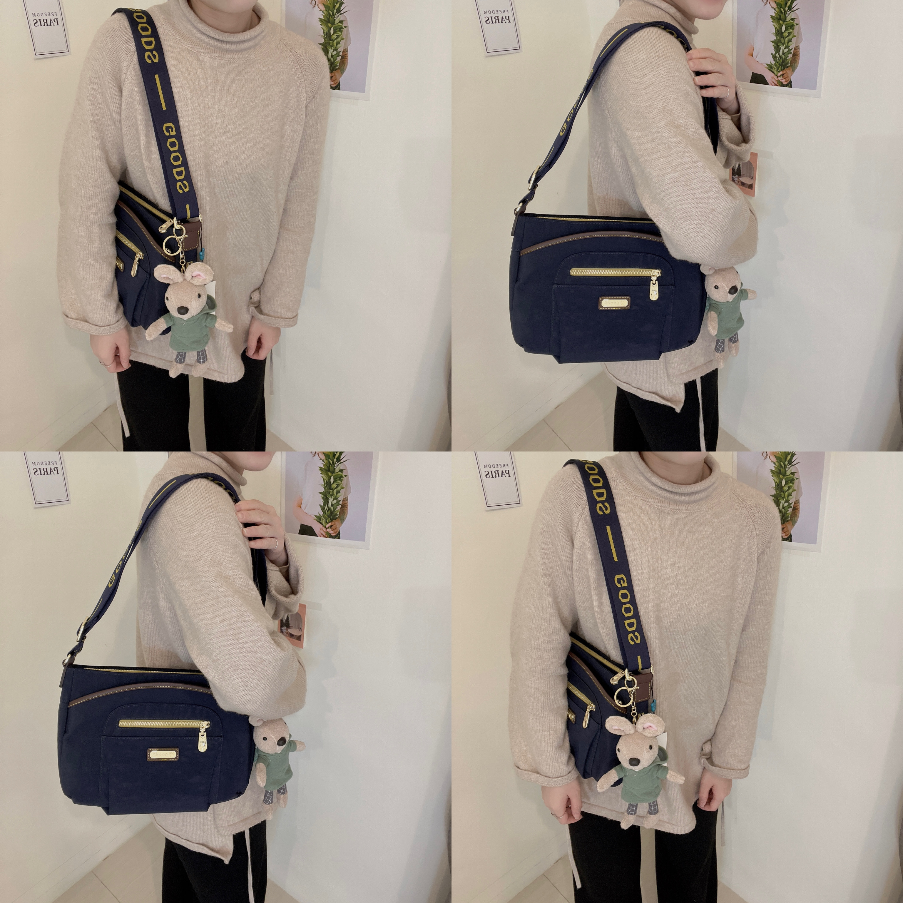 GOODS 織帶黃藍 丹寧防潑水側背包 附小熊吊飾 #2237