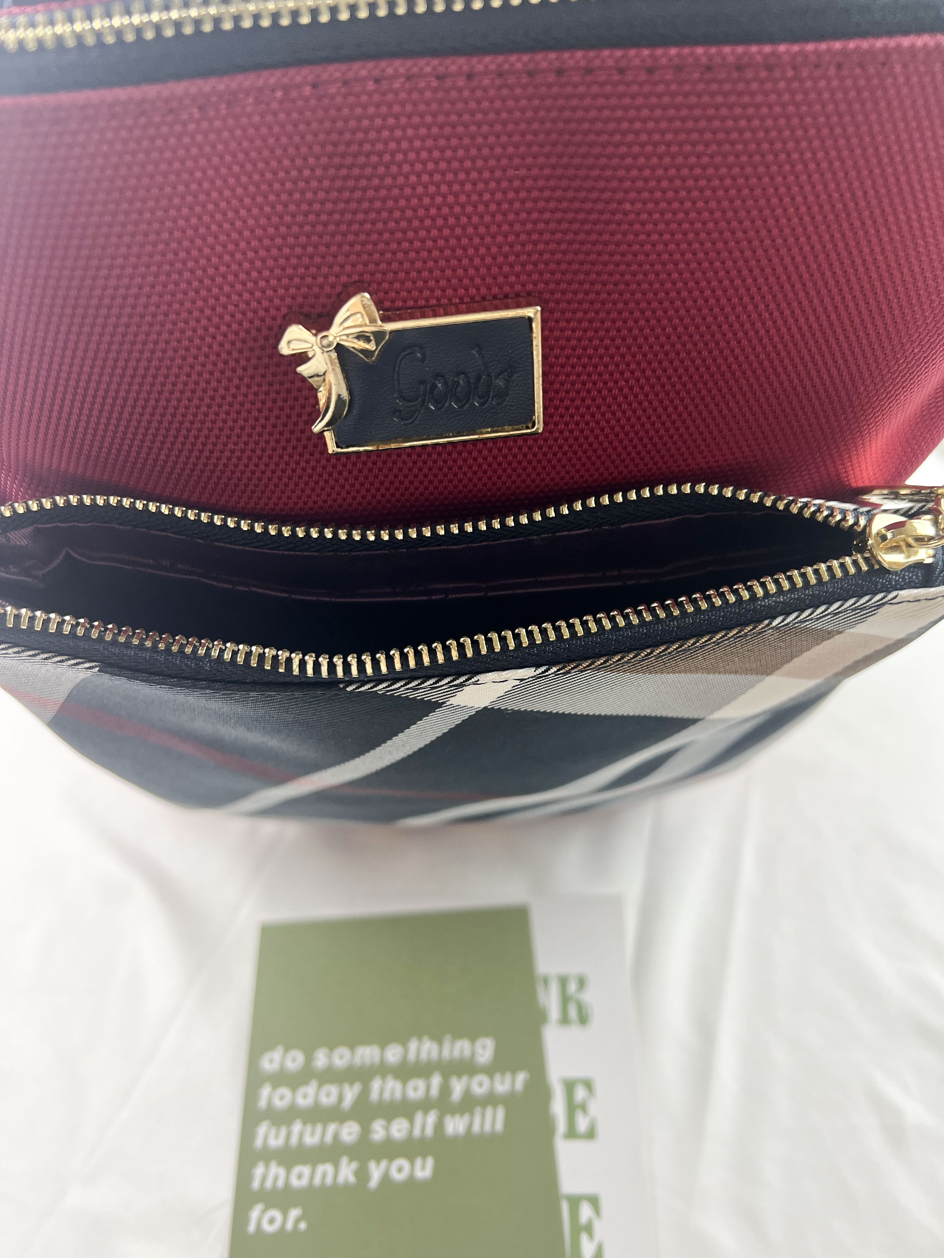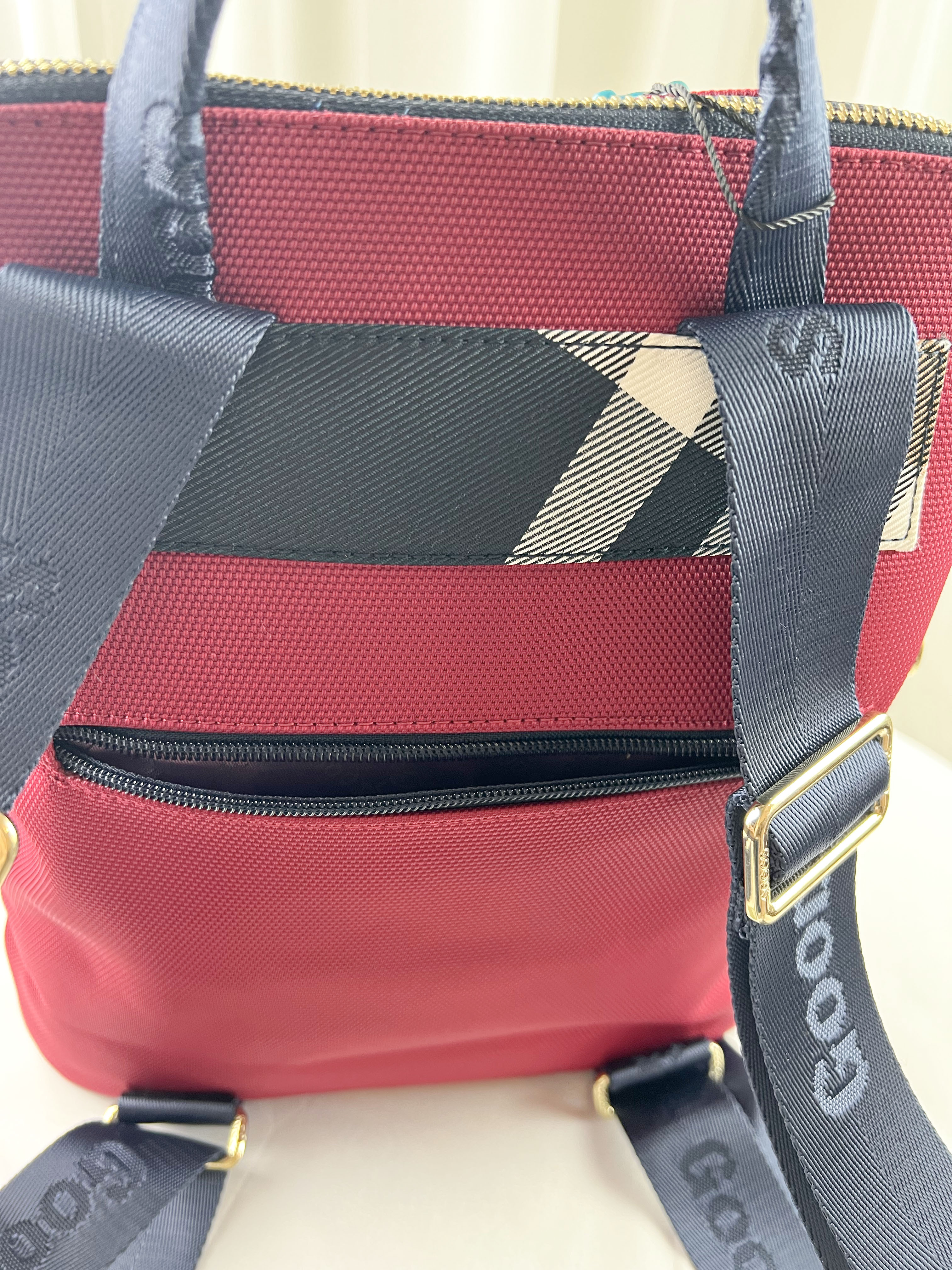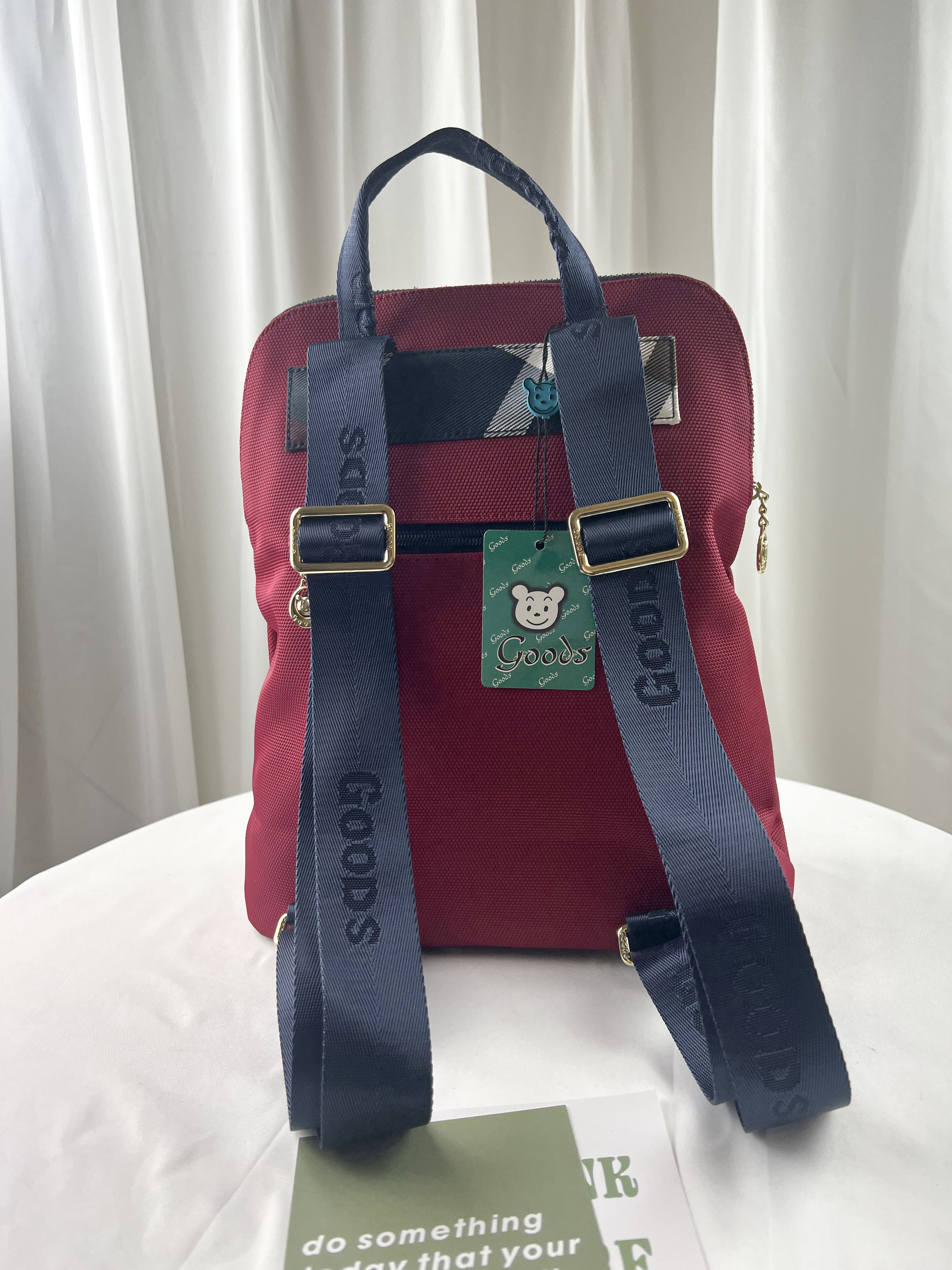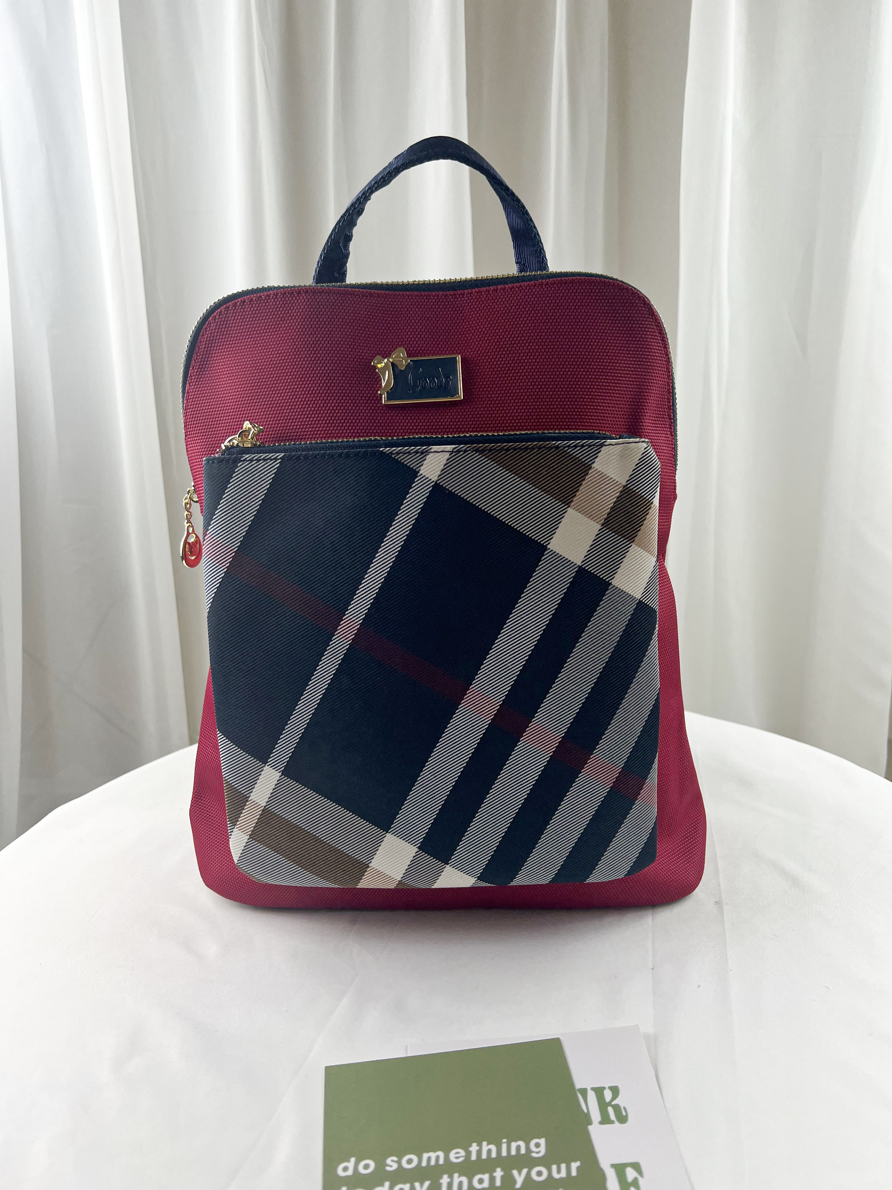 GOODS 紅格紋拼色防潑水後背包 #2238
