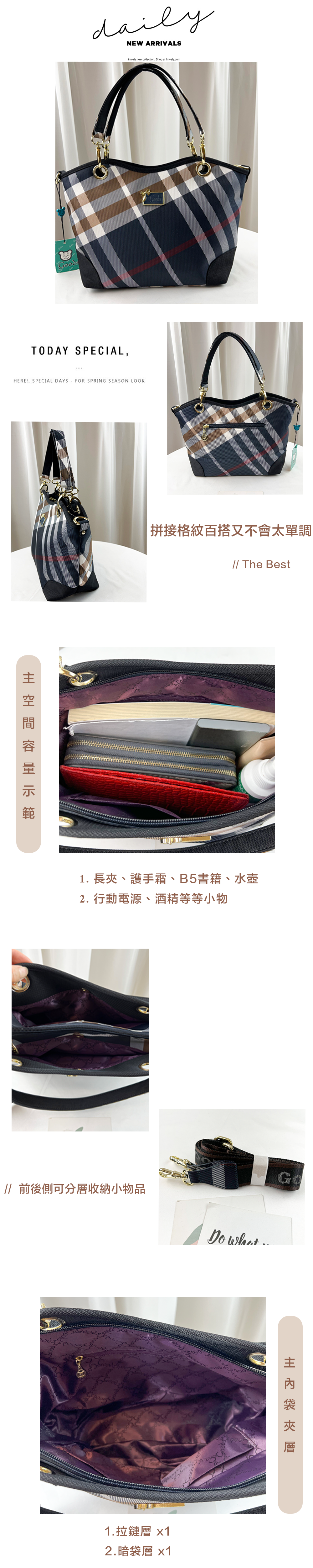 ●  規格:主空間x3  內拉鍊袋x1  暗格x1  後層拉鍊x1