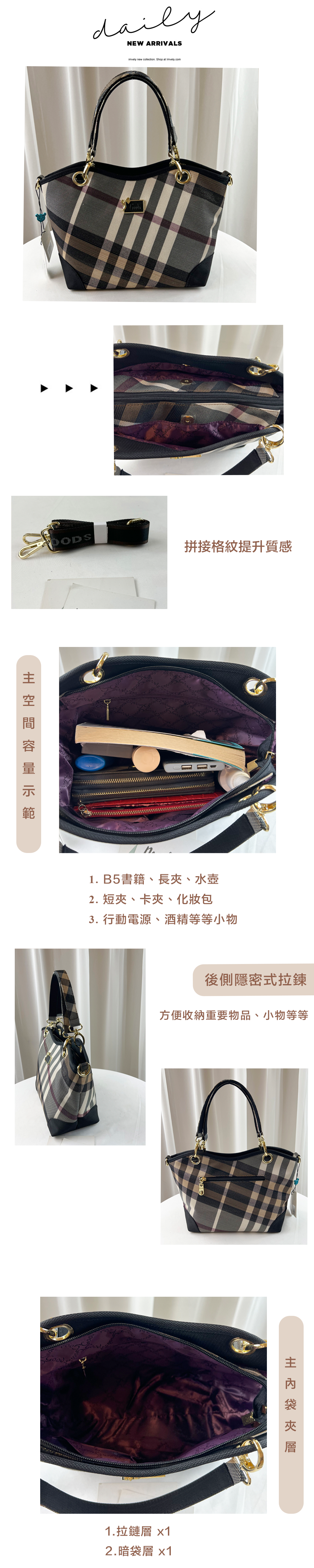 GOODS 金線大格黑防潑水手提包 / 側背包 #2266