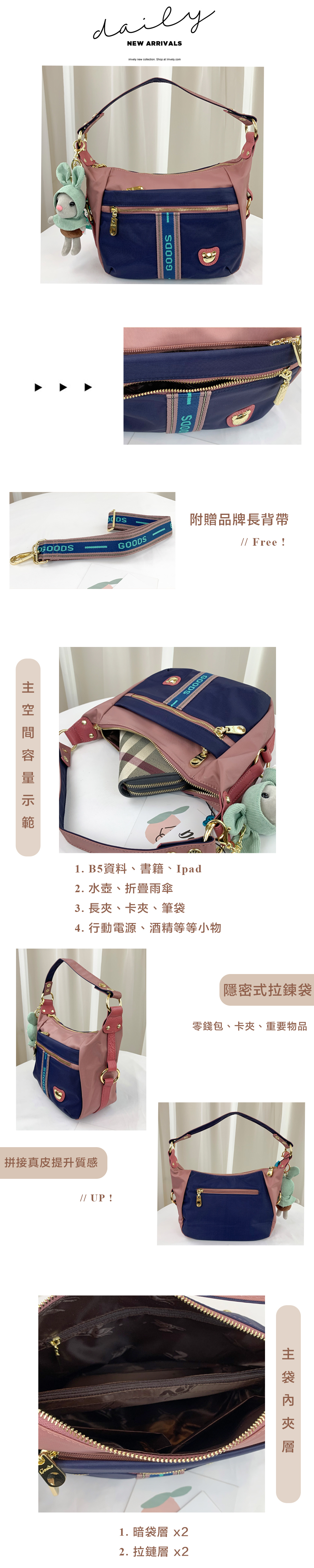 ✒︎尼龍布料不易髒,拼接真皮材質,整體質感提升。