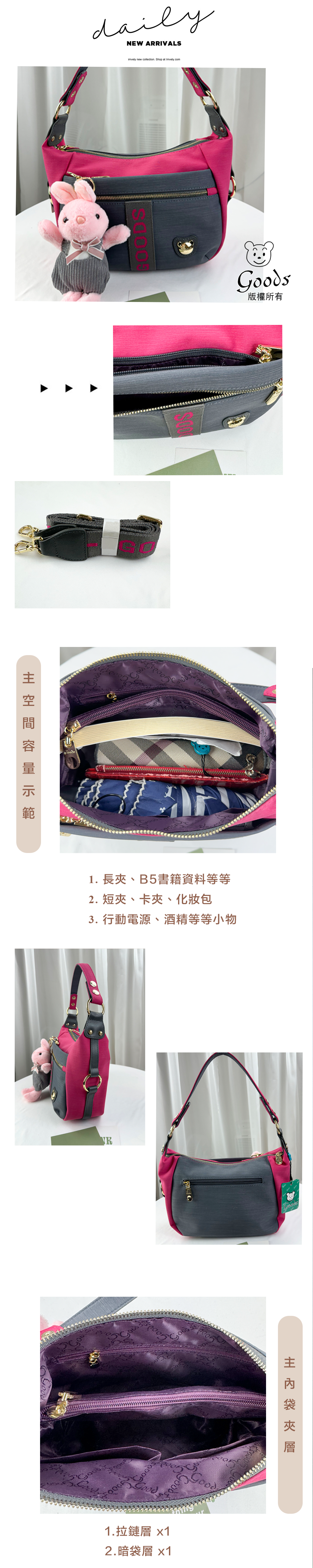GOODS 灰桃拼色防潑水肩背包 / 側背包 附兔兔吊飾 #2276