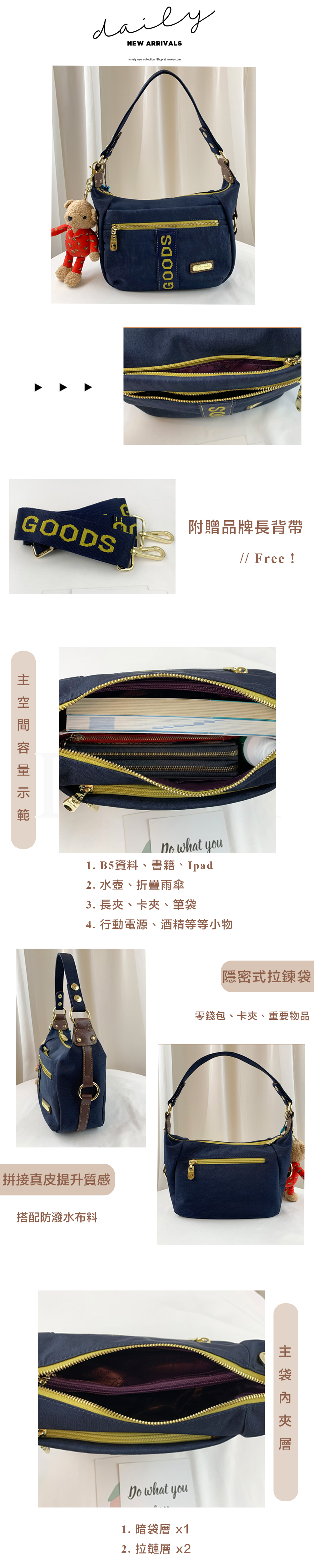 ✒︎採用防潑水布料,不怕下雨淋濕包包內裡重要物品。