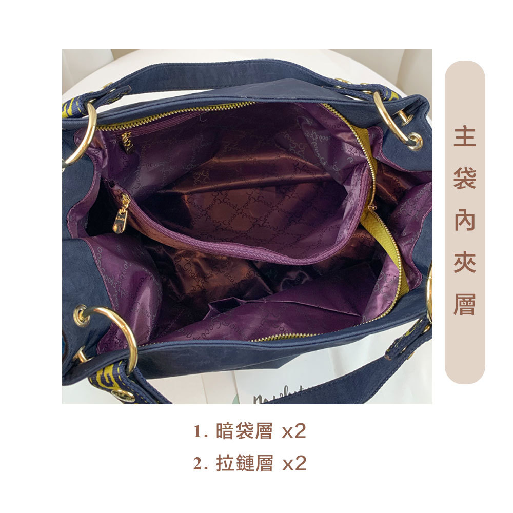 GOODS 織帶黃藍 丹寧防潑水手提包 / 側背包 附小熊吊飾 #2281