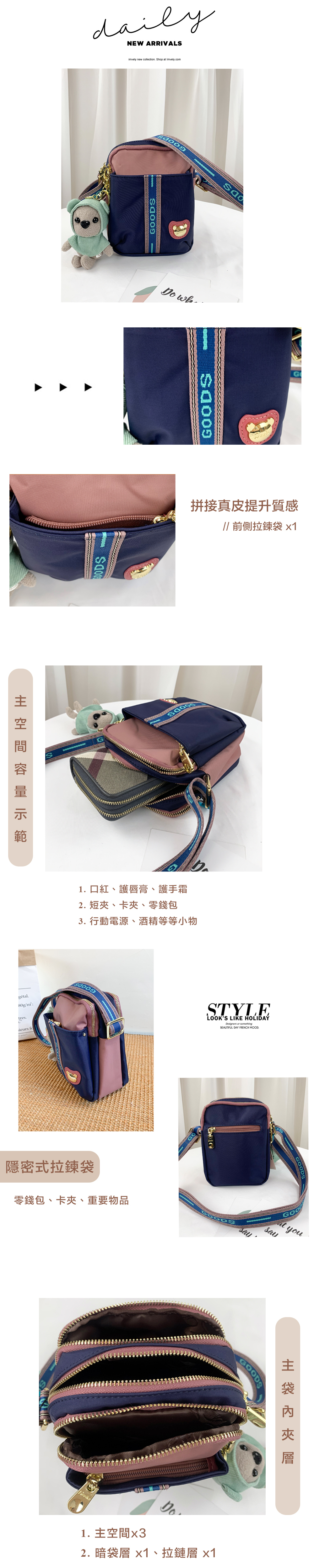 GOODS 織帶藍粉 尼龍防潑水側背包 / 手機袋 #2499