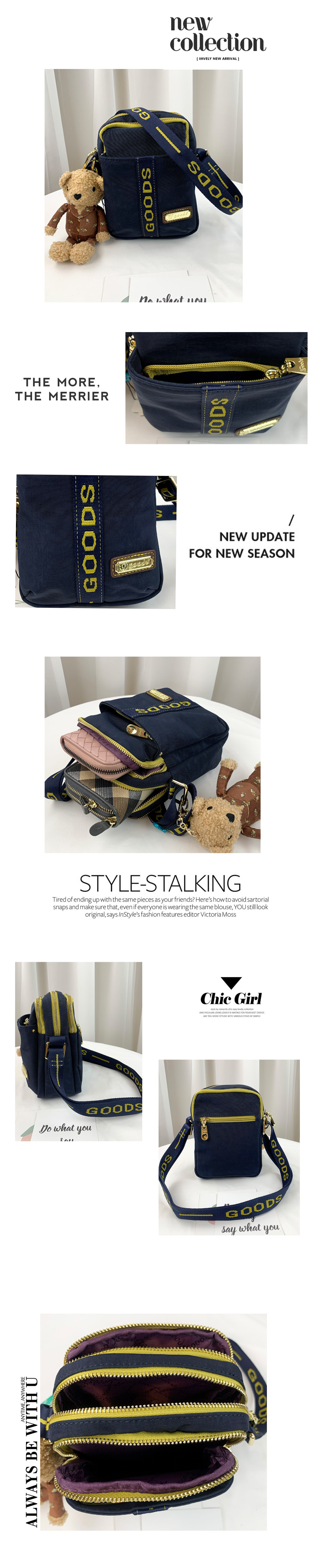GOODS 織帶黃藍 丹寧防潑水側背包 / 手機袋 附小熊吊飾 #2499