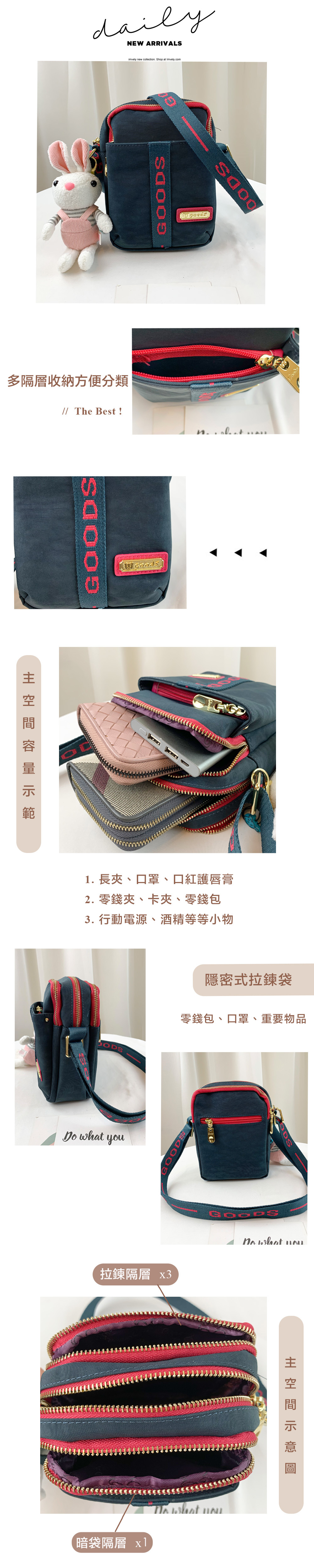 ✒︎三層主空間分層收納,亦可當作手機包出門使用。