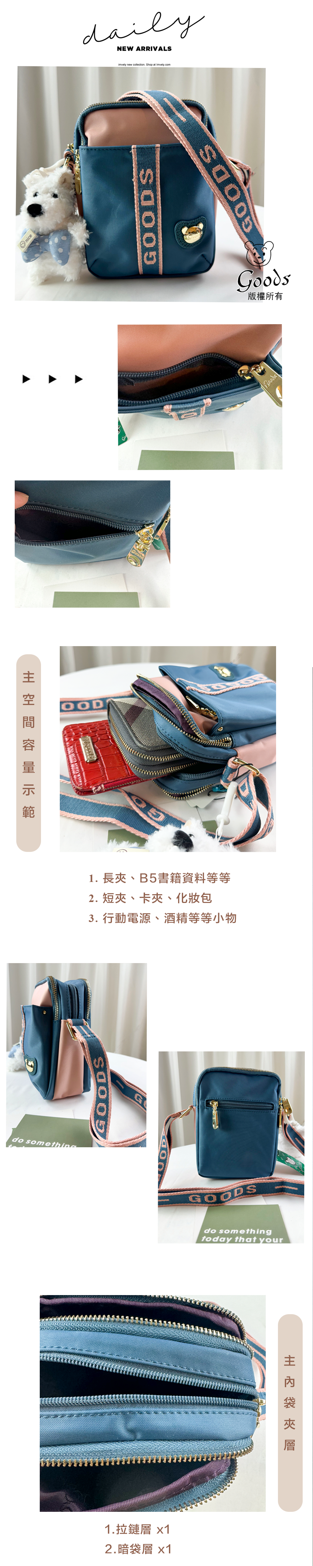 GOODS 綠粉拼色防潑水側背包 / 手機袋 附小熊吊飾 #2499