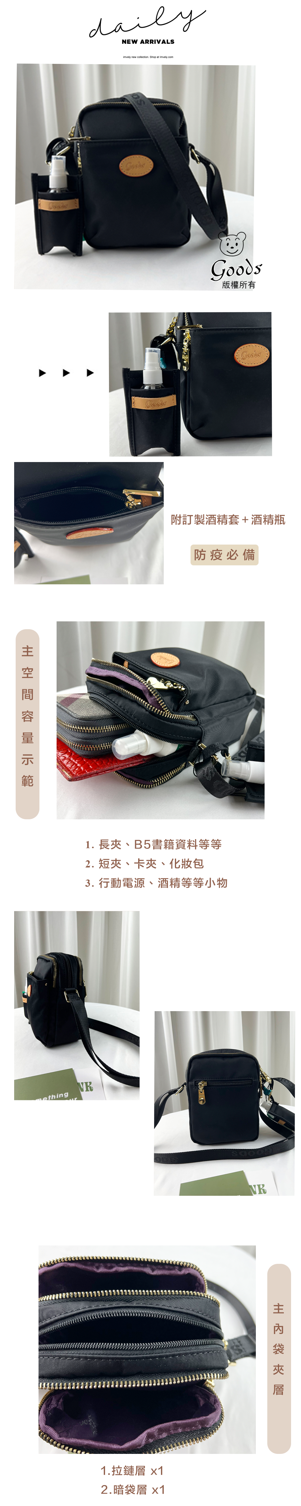 GOODS 素面尼龍防潑水側背包 附酒精瓶 #2499