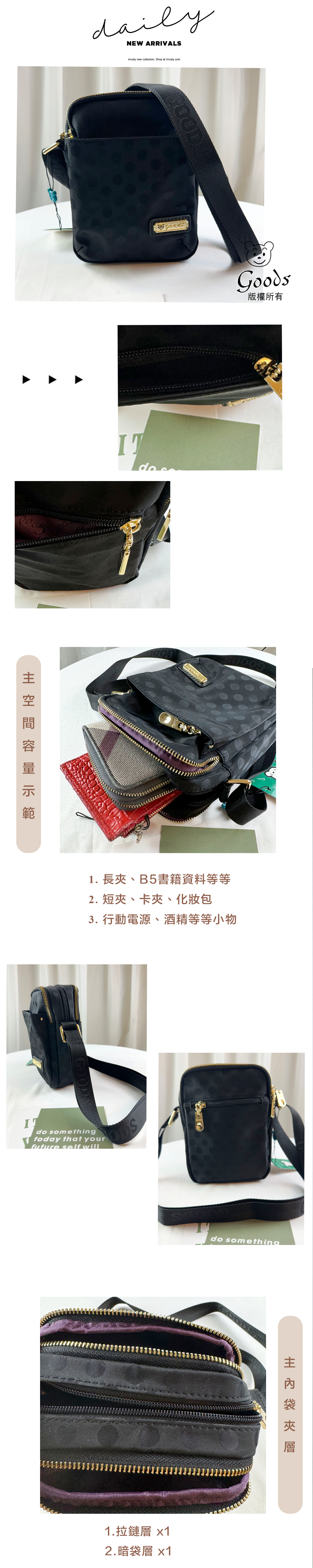 GOODS 復古黑點點 尼龍防潑水側背包 #2499
