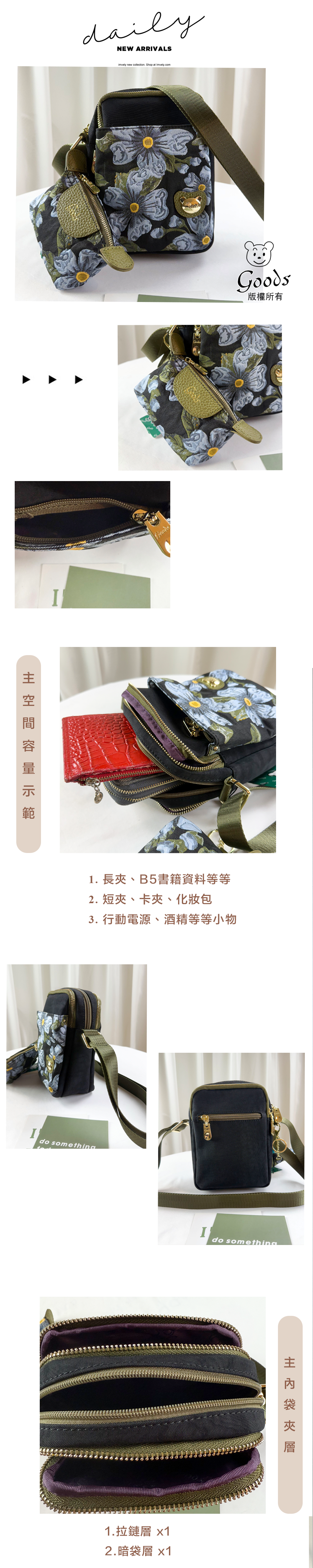 ✒︎三層主空間分層收納,亦可當作手機包出門使用