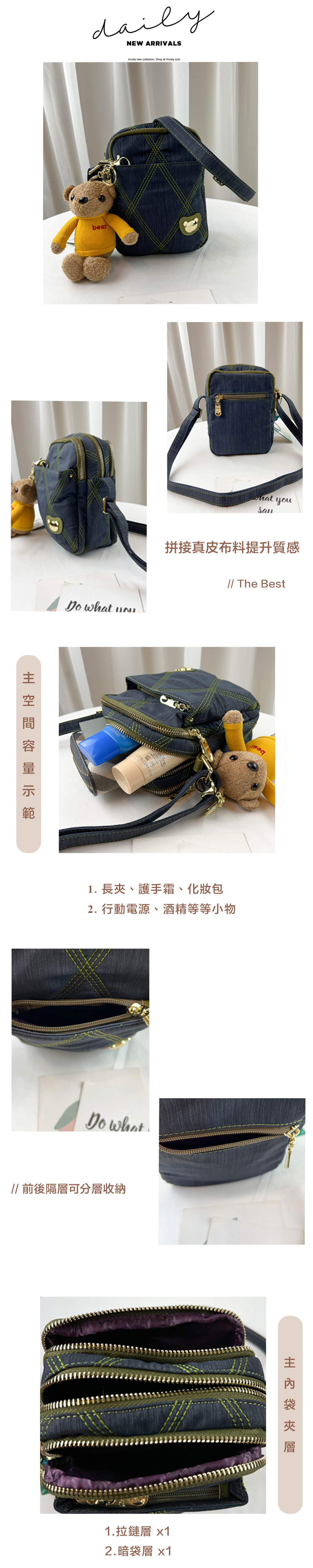 ✒︎三層主空間分層收納,亦可當作手機包出門使用