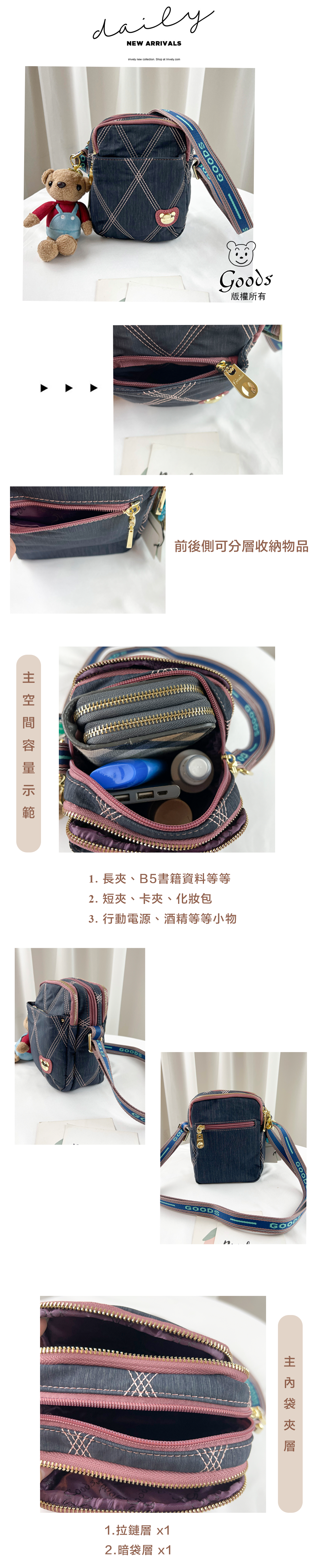 ✒︎三層主空間分層收納,亦可當作手機包出門使用