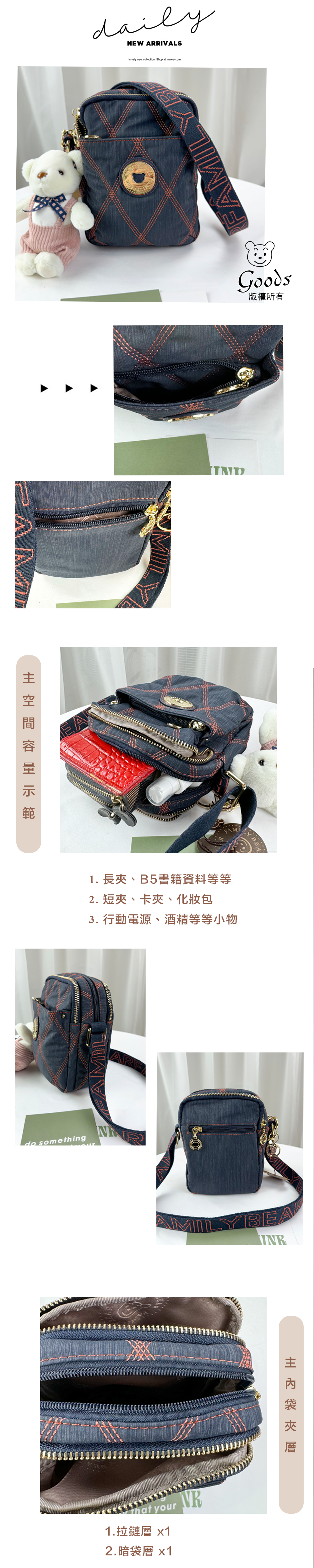 ✒︎三層主空間分層收納,亦可當作手機包出門使用