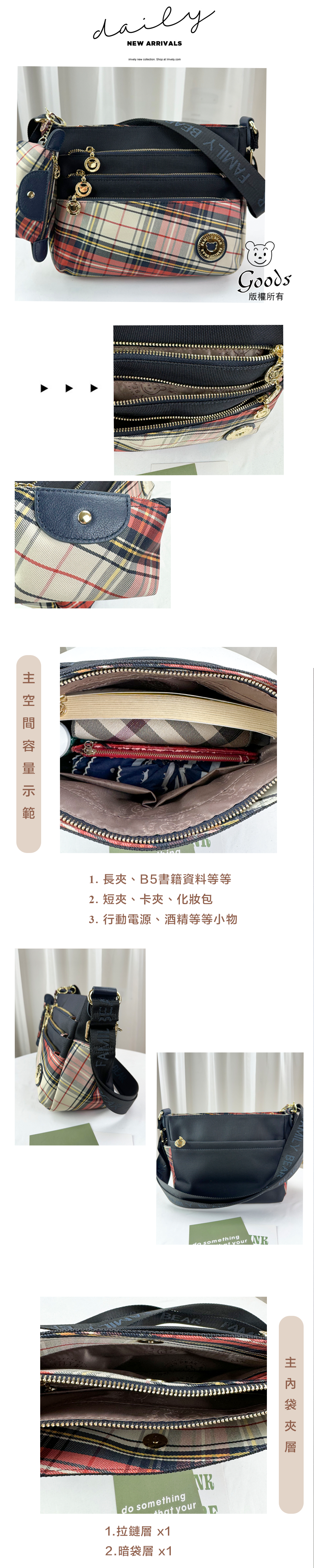 FamilyBear 橙格紋拼色防潑水側背包 附格紋零錢包 #2502