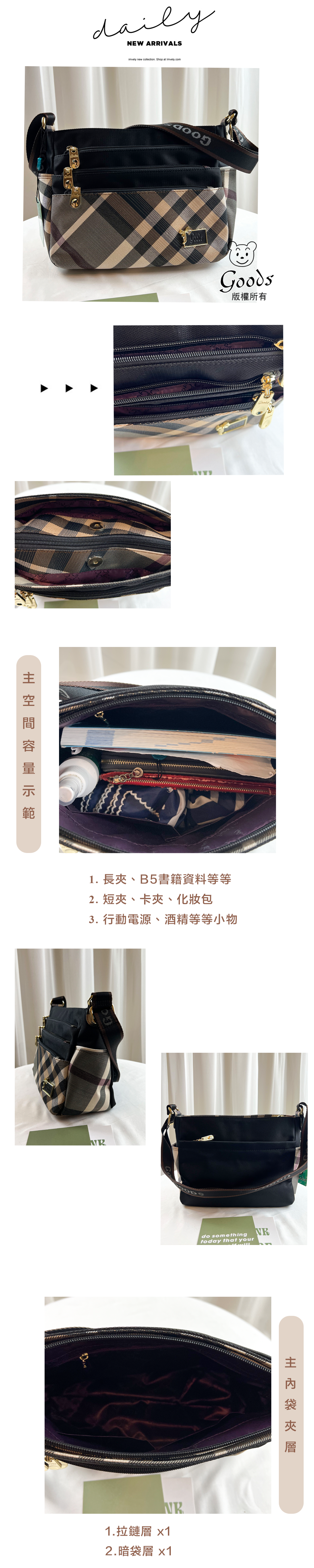 GOODS 英倫格紋藍拼色防潑水側背包 #2502