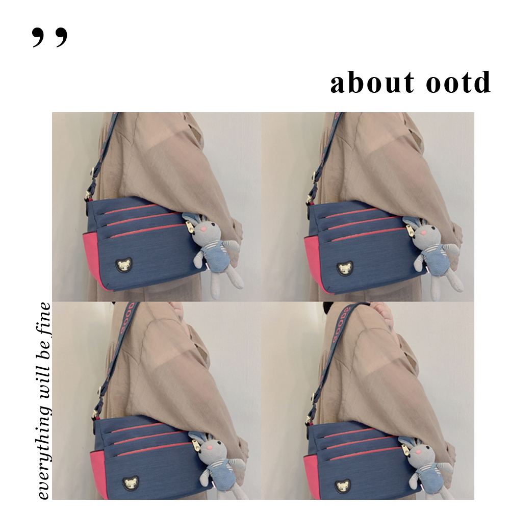 GOODS 黑色菱格紋防潑水側背包 附小熊吊飾 #2502
