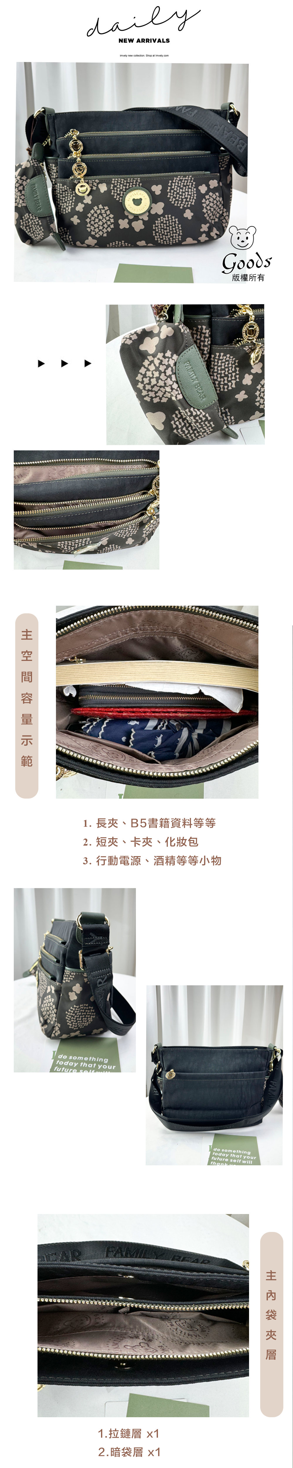 FamilyBear 墨綠圖騰防潑水側背包 附零錢包 #2502