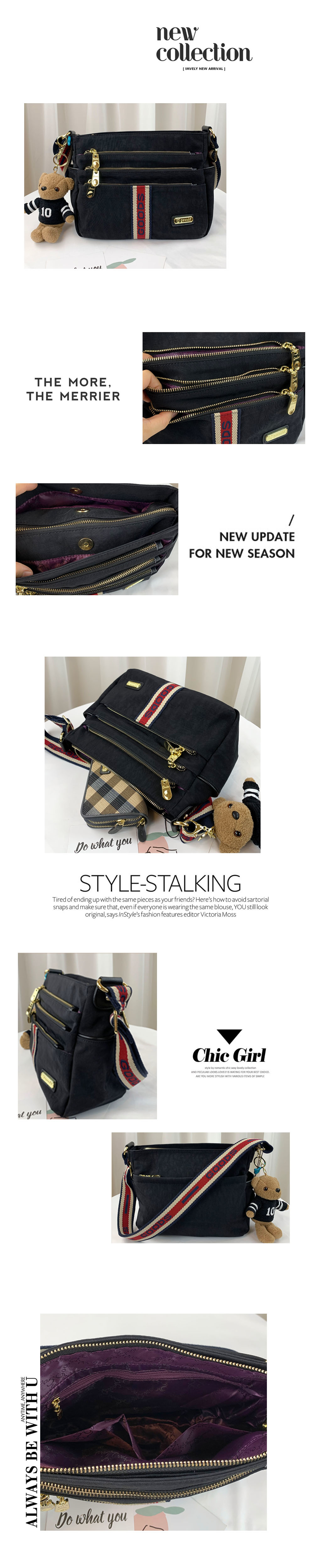 全部商品 / GOODS 織帶海軍藍配黃防潑水側背包 附小熊吊飾 #2502