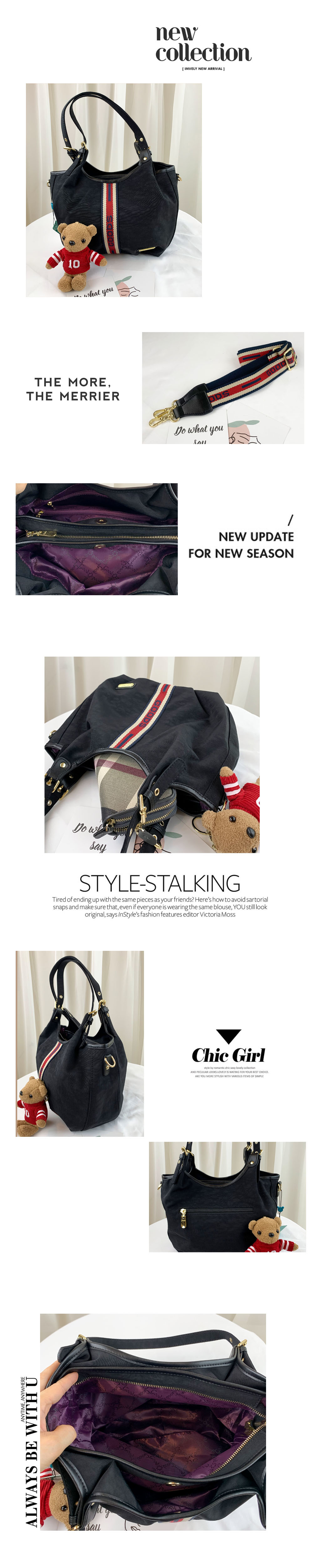 GOODS 織帶黑 水洗防潑水手提包 / 側背包 附小熊吊飾 #2520