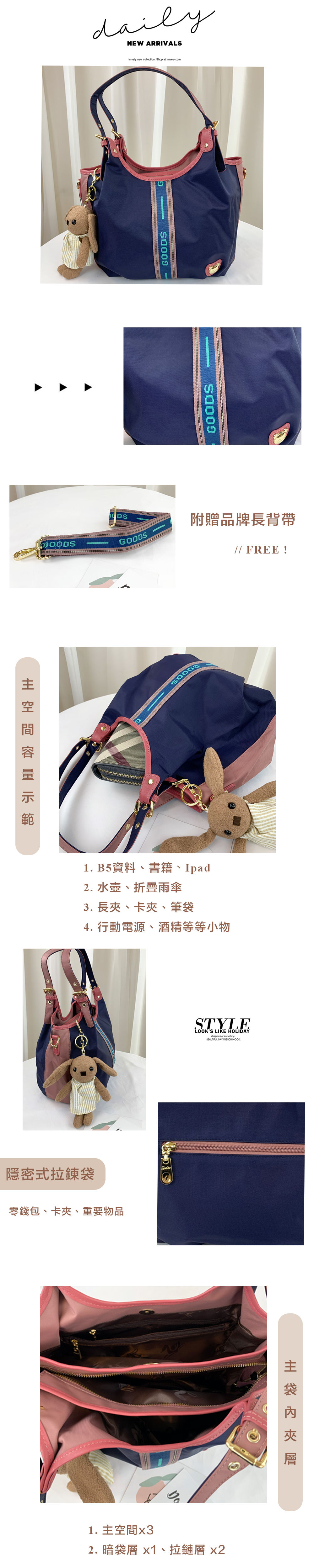 GOODS 織帶藍粉 尼龍防潑水手提包 / 側背包 #2520