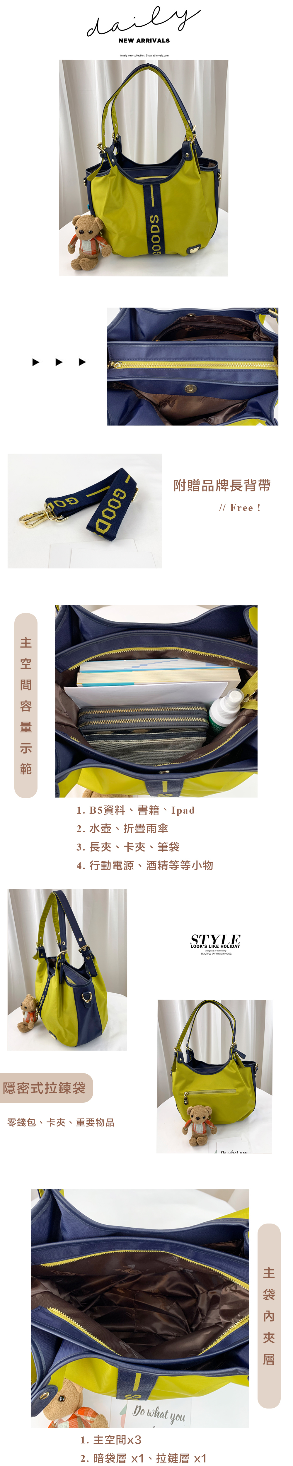 GOODS 織帶芥末黃藍 尼龍防潑水手提包 / 側背包 #2520