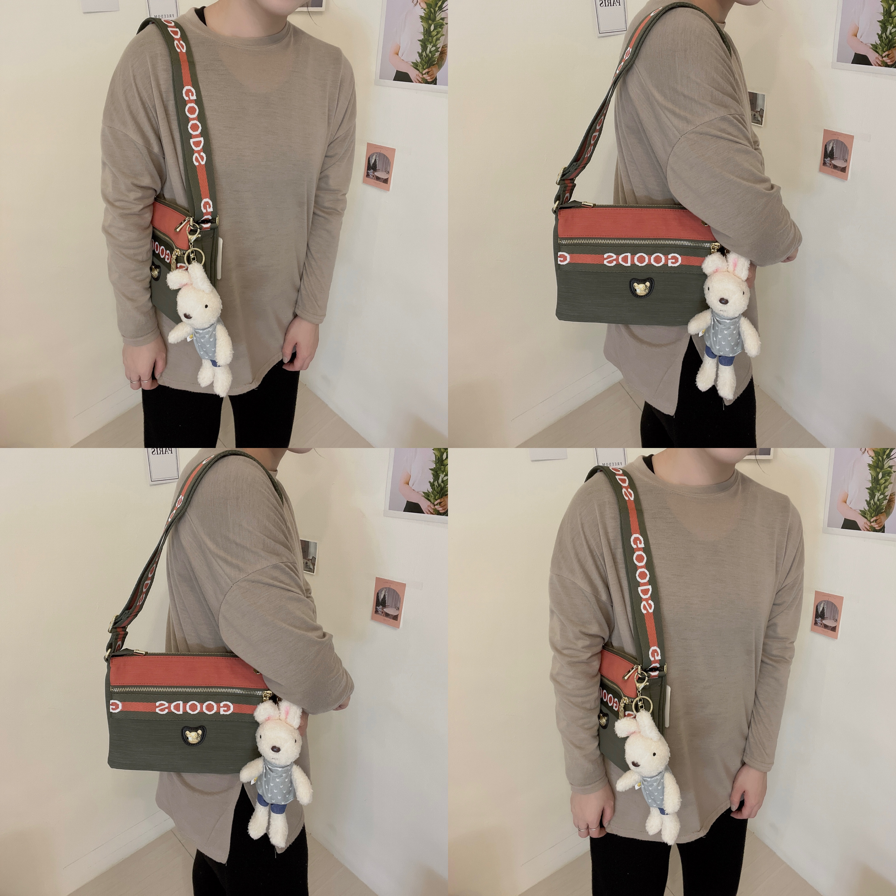 GOODS 橘綠拼色 防潑水側背包 附小熊吊飾 #2522