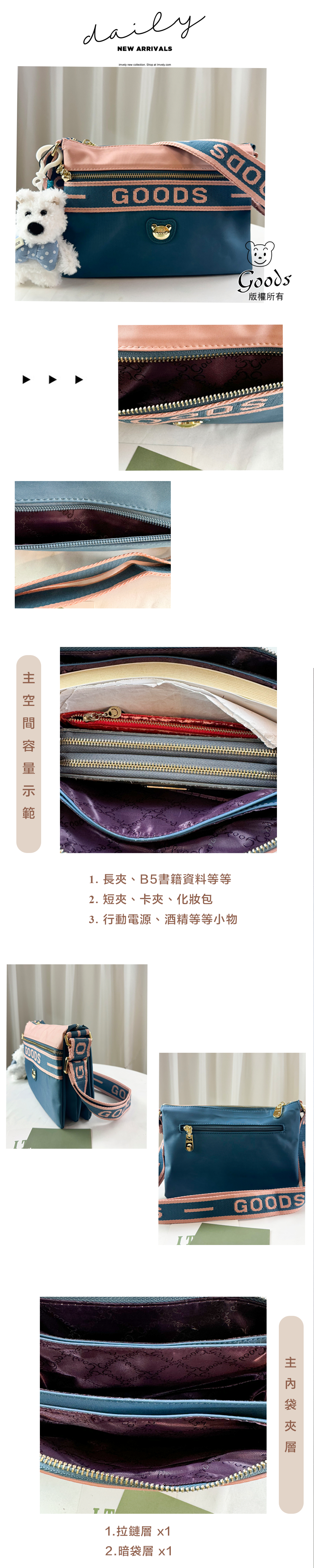 ✒︎採用防潑水布料,不怕下雨淋濕包包內裡重要物品。