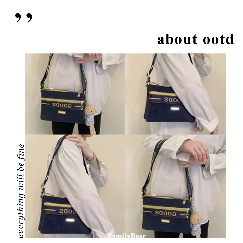 GOODS 織帶海軍藍配黃防潑水側背包 附小熊吊飾 #2522