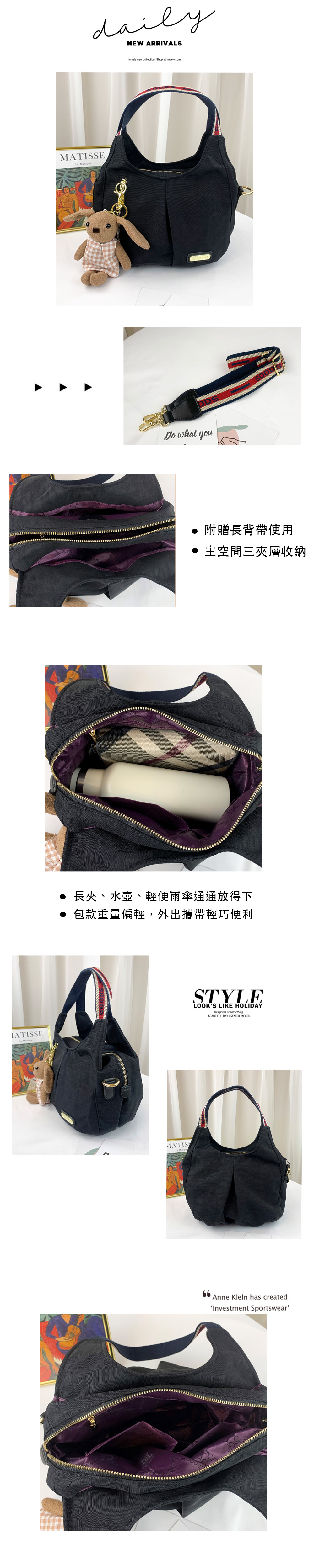 ✒︎採用防潑水布料,不怕下雨淋濕包包內裡重要物品。