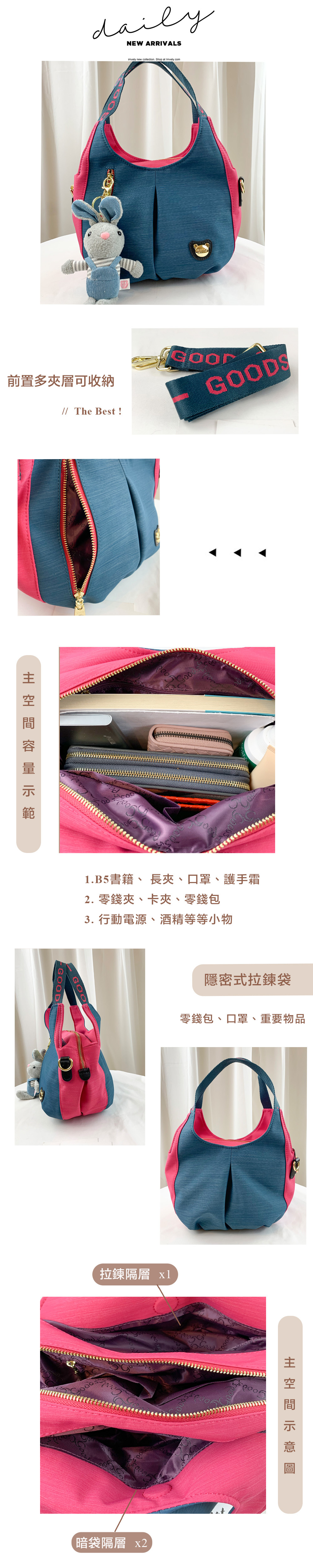 ✒︎採用防潑水布料,不怕下雨淋濕包包內裡重要物品。