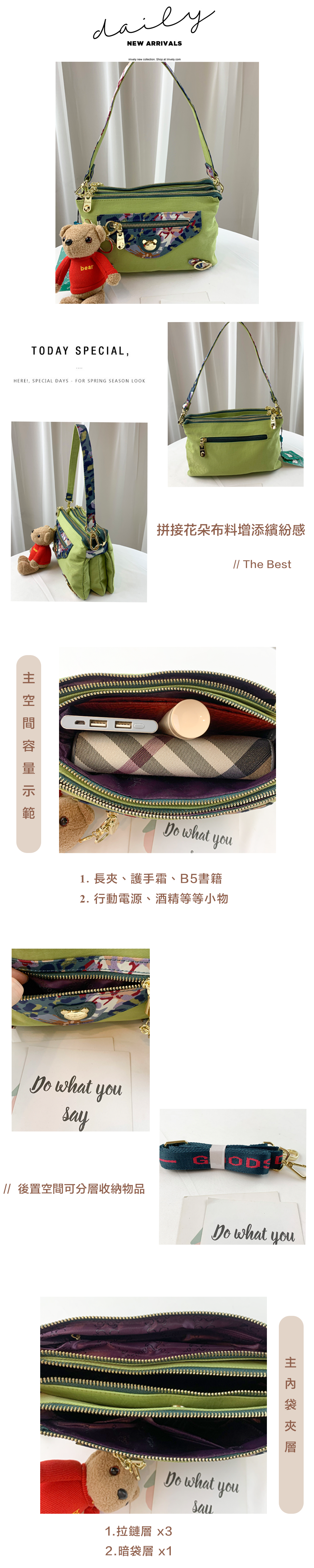 GOODS 綠花朵尼龍肩背包 / 側背包 #2562