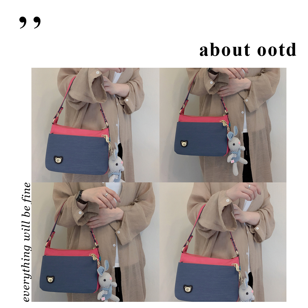GOODS 綠桃拼色 防潑水肩背包 / 側背包 附小熊吊飾 #2563