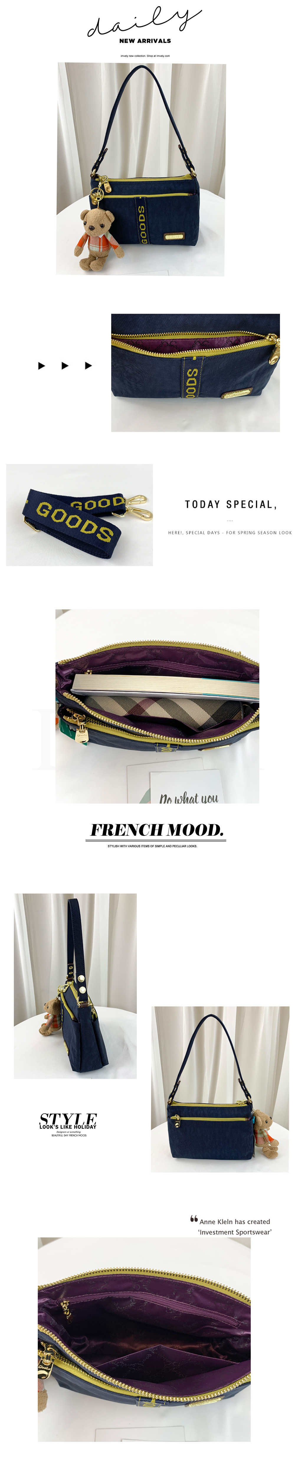 GOODS 織帶黃藍 丹寧防潑水肩背包 / 側背包 附小熊吊飾 #2563
