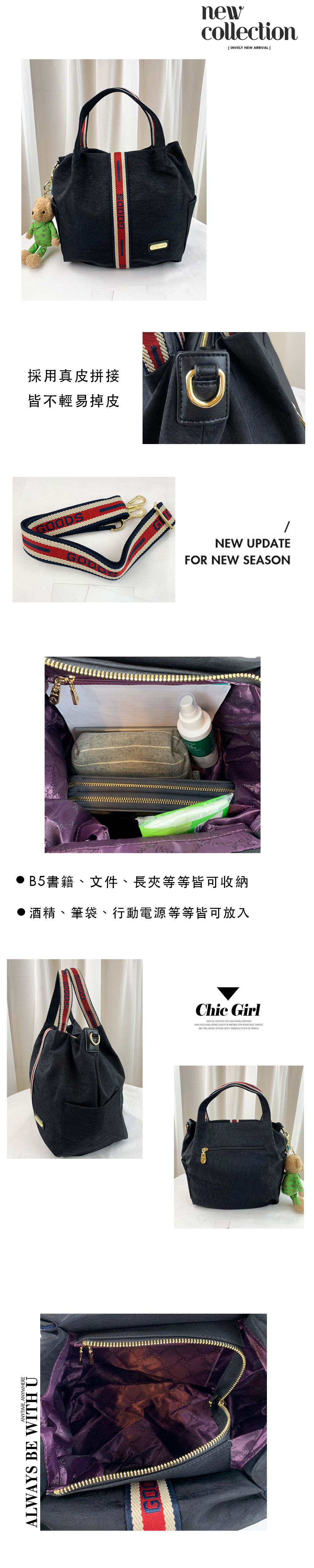 GOODS 卡其織帶防潑水防潑水手提包 / 側背包 附小熊吊飾 #2568