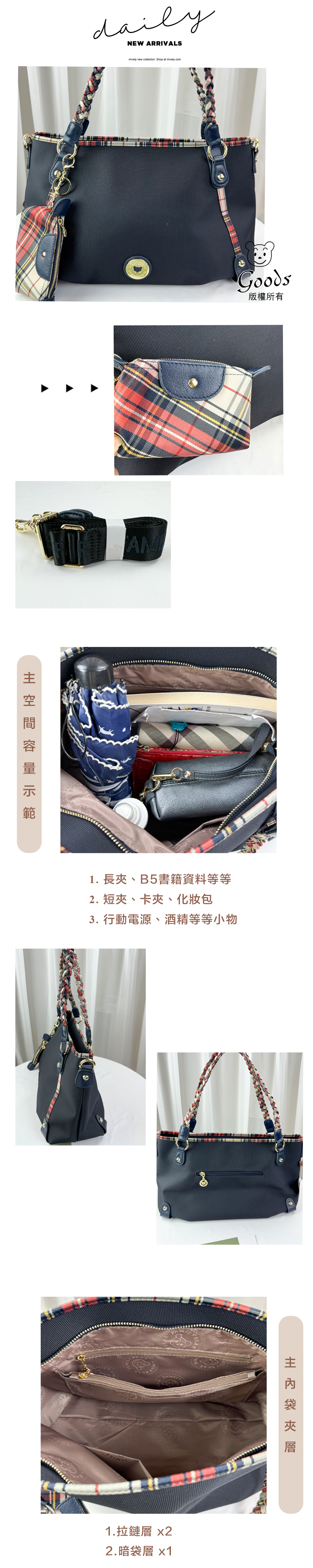 FamilyBear 橙格紋拼色防潑水手提包 / 側背包 附格紋零錢包 #2571
