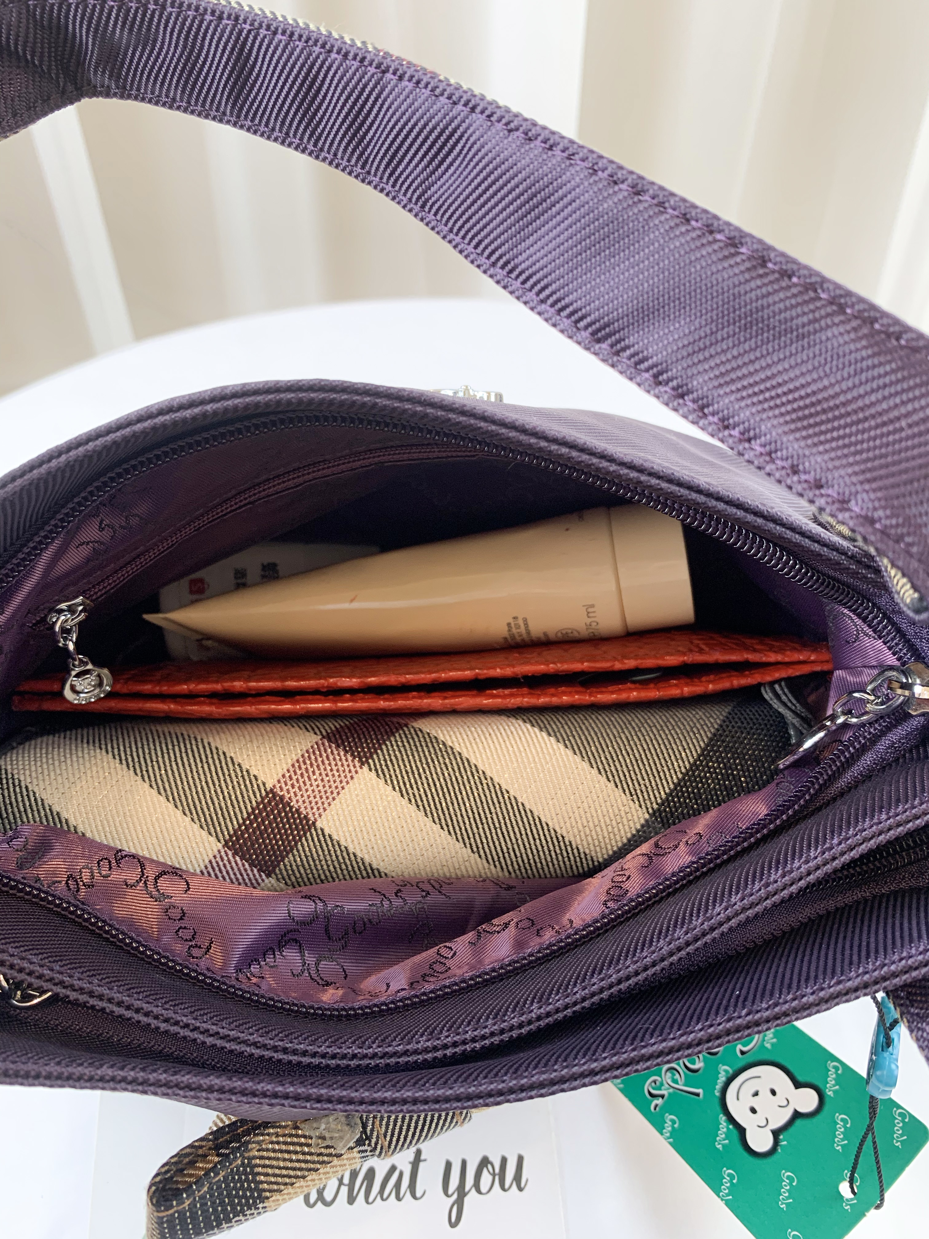 GOODS 紫格紋拼色防潑水手提包 / 側背包 #2579