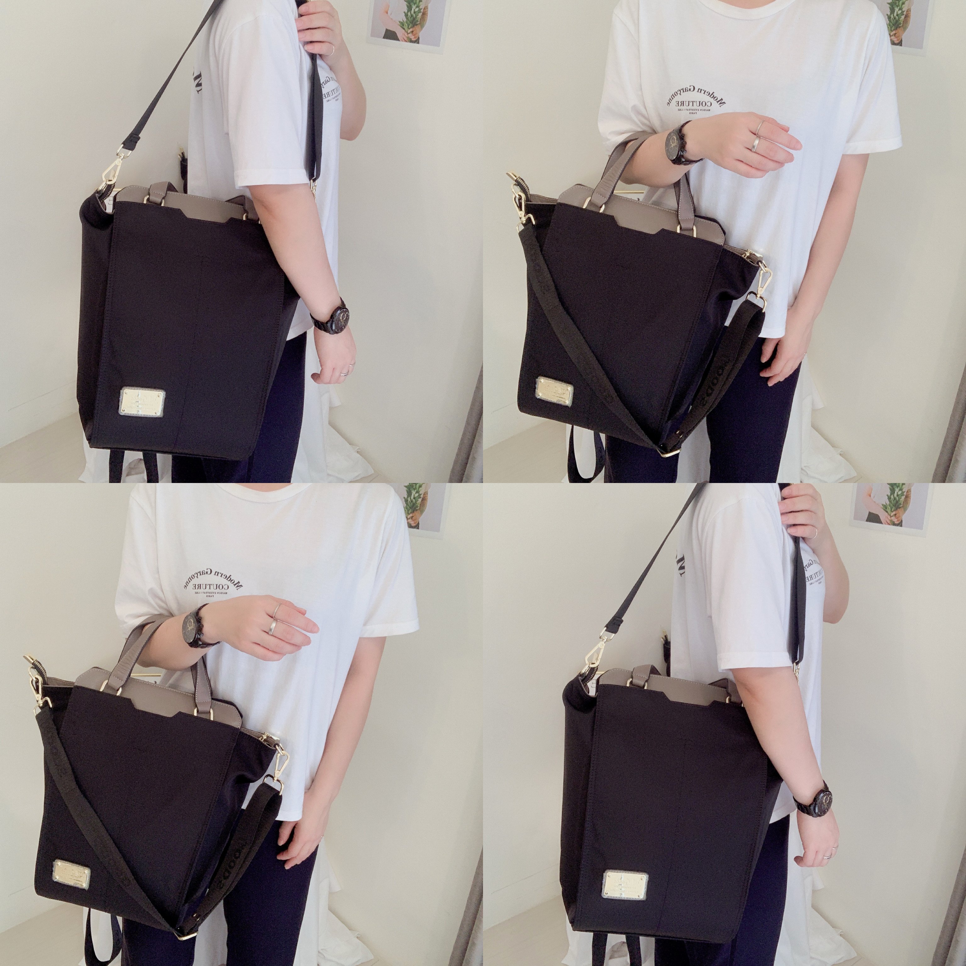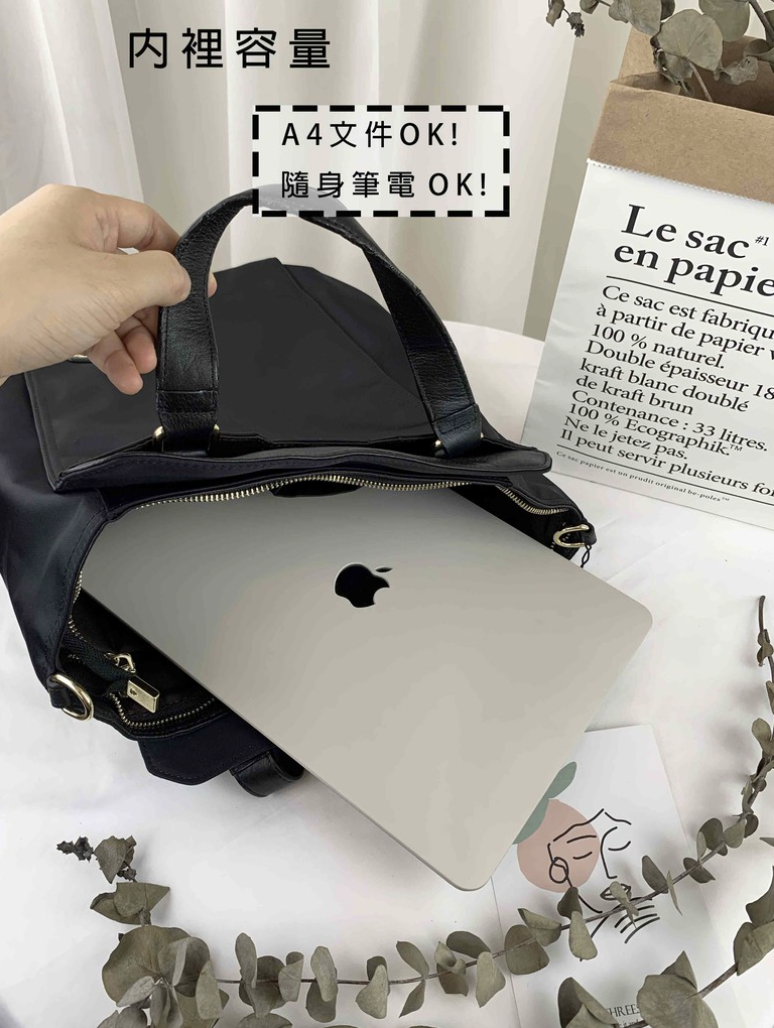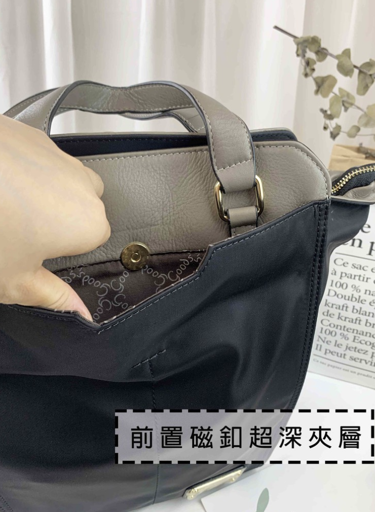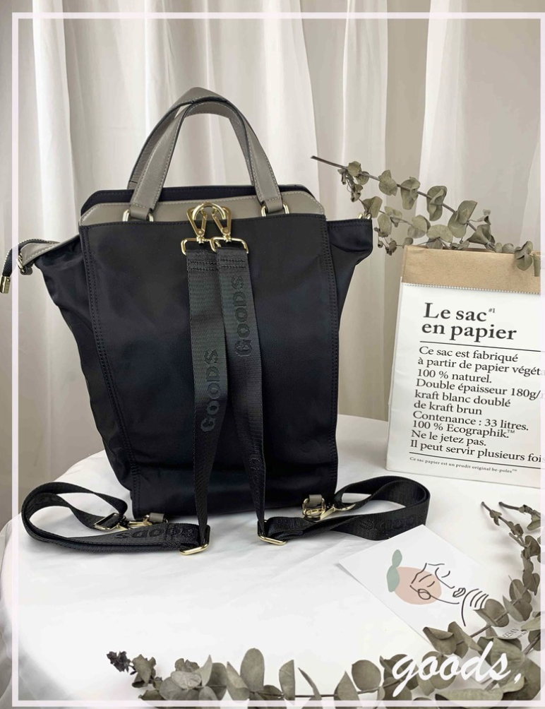 GOODS 大象灰 尼龍拼接真皮三用手提包 / 側背包 / 後背包 #2602