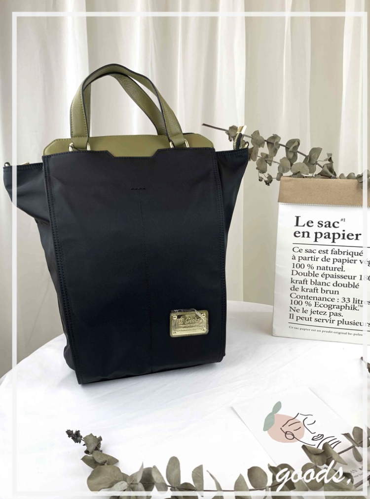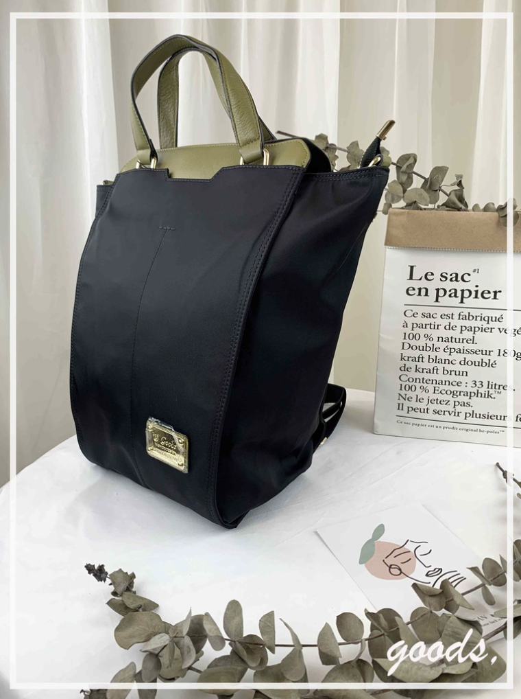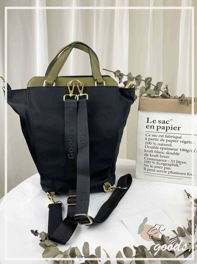 GOODS 抹茶綠 尼龍拼接真皮三用手提包 / 側背包 / 後背包 #2602