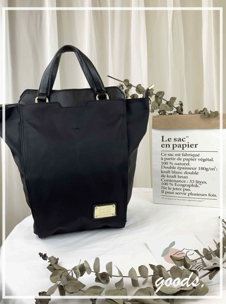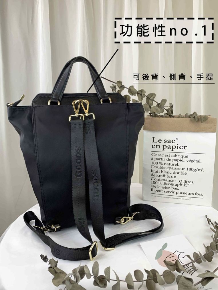 GOODS 經典黑 尼龍拼接真皮三用手提包 / 側背包 / 後背包 #2602