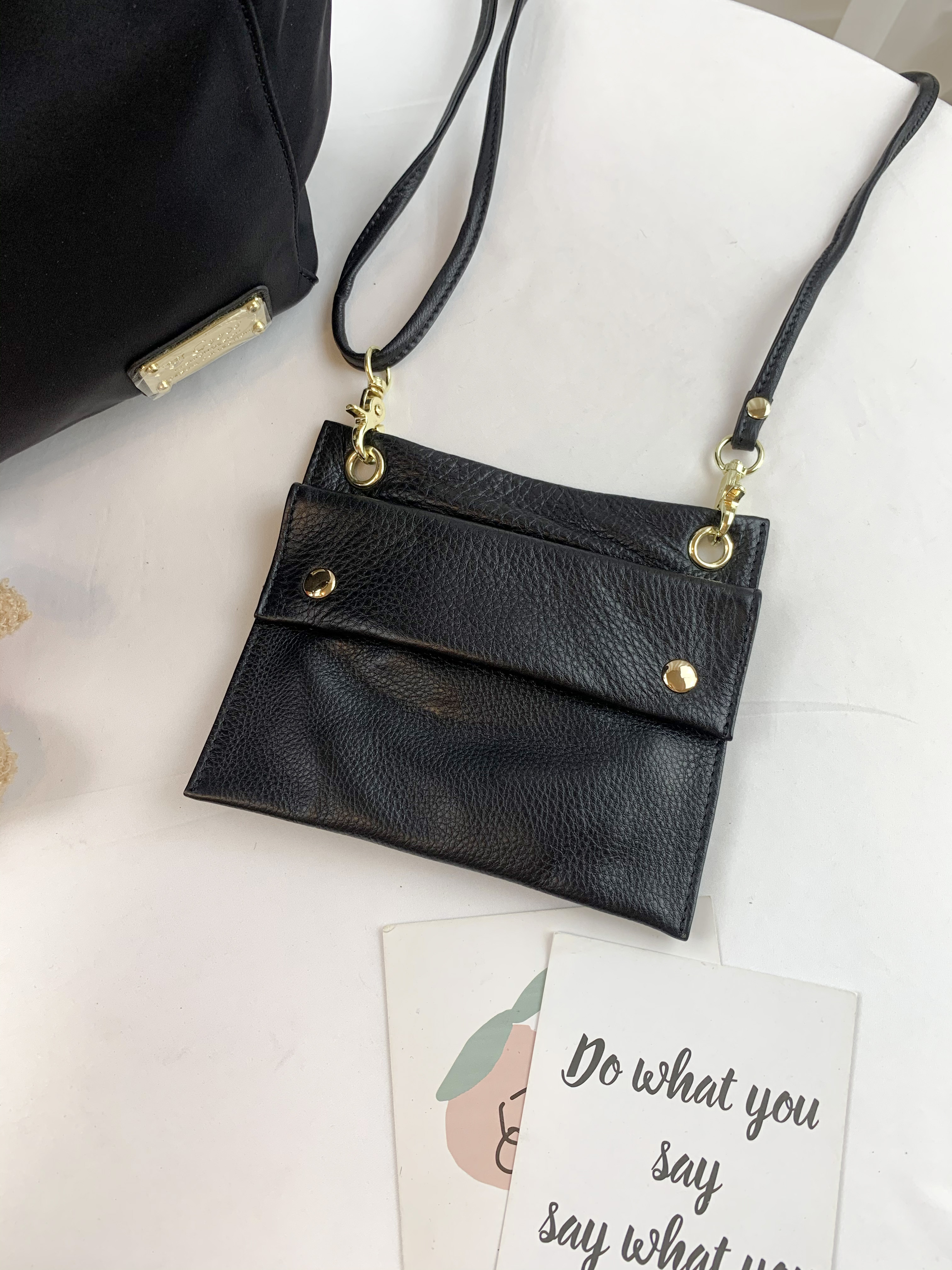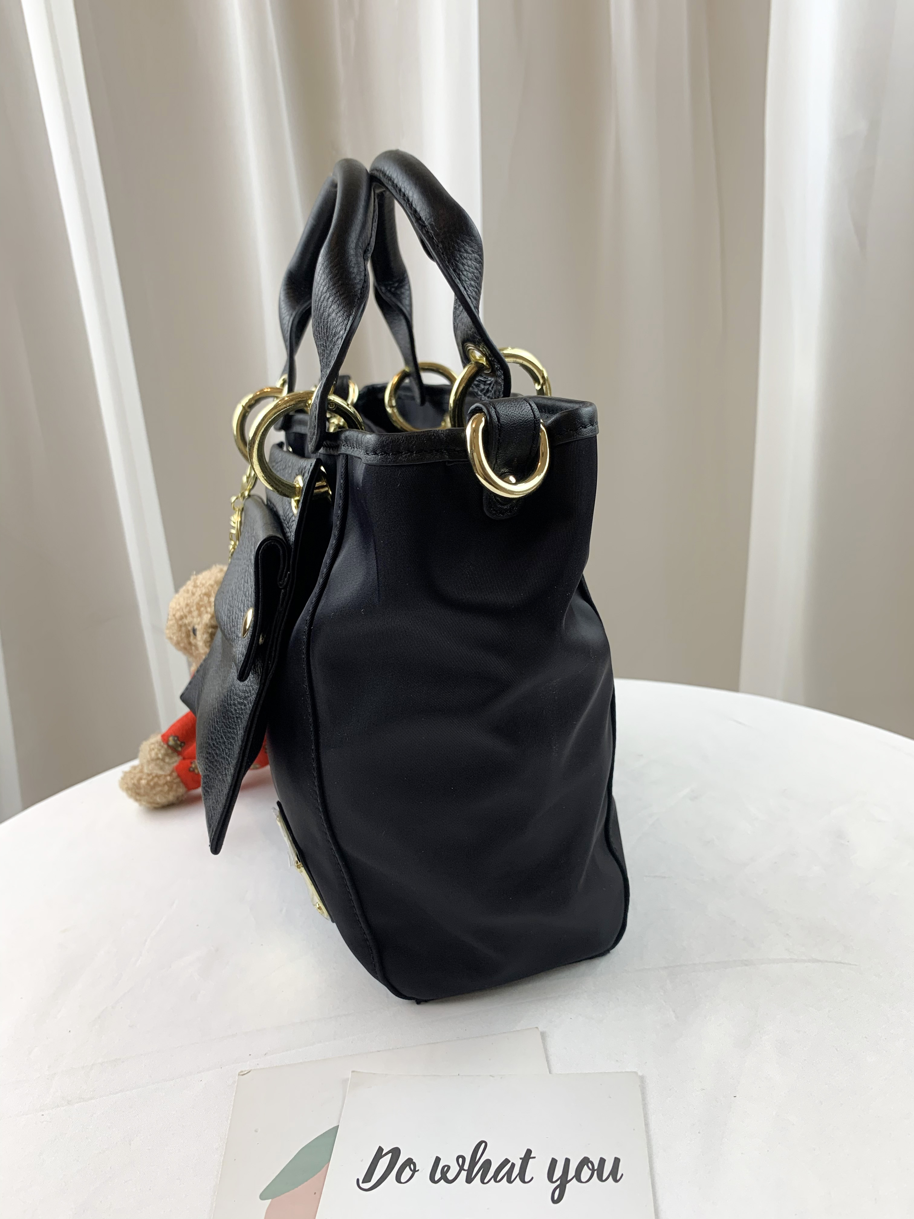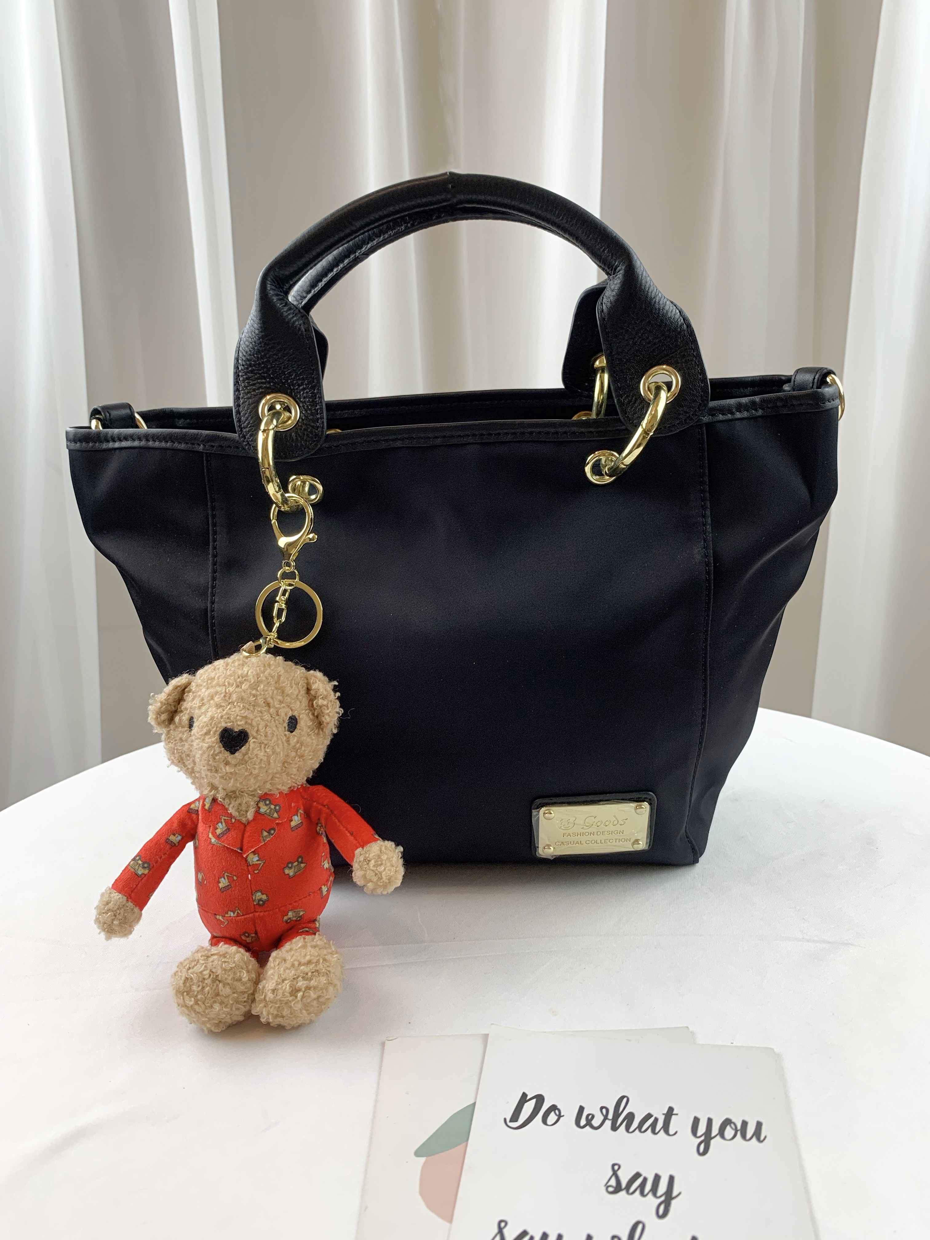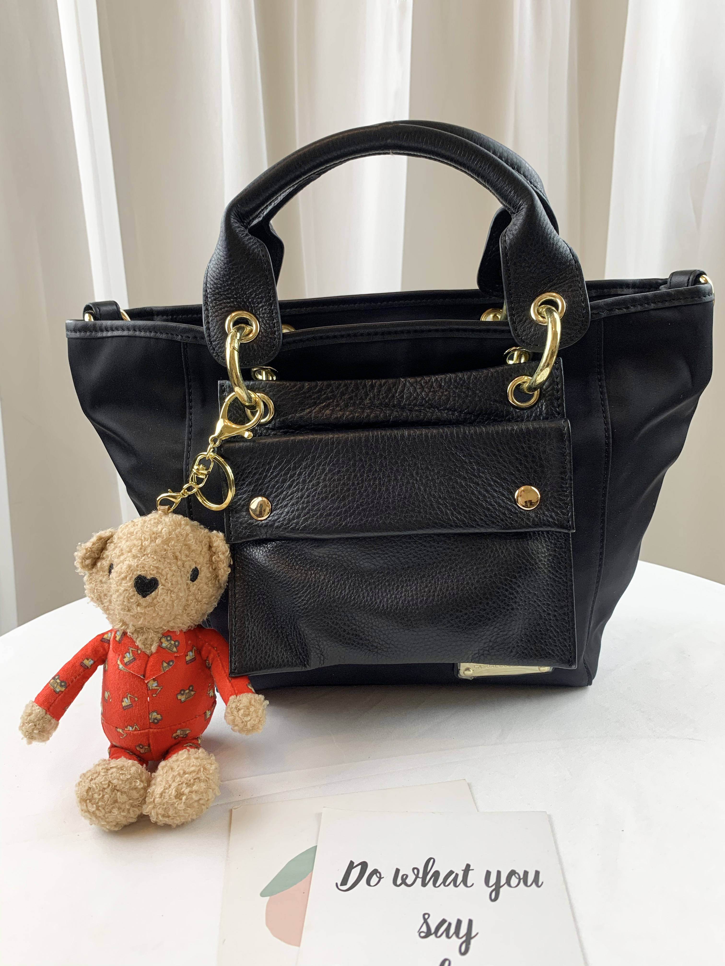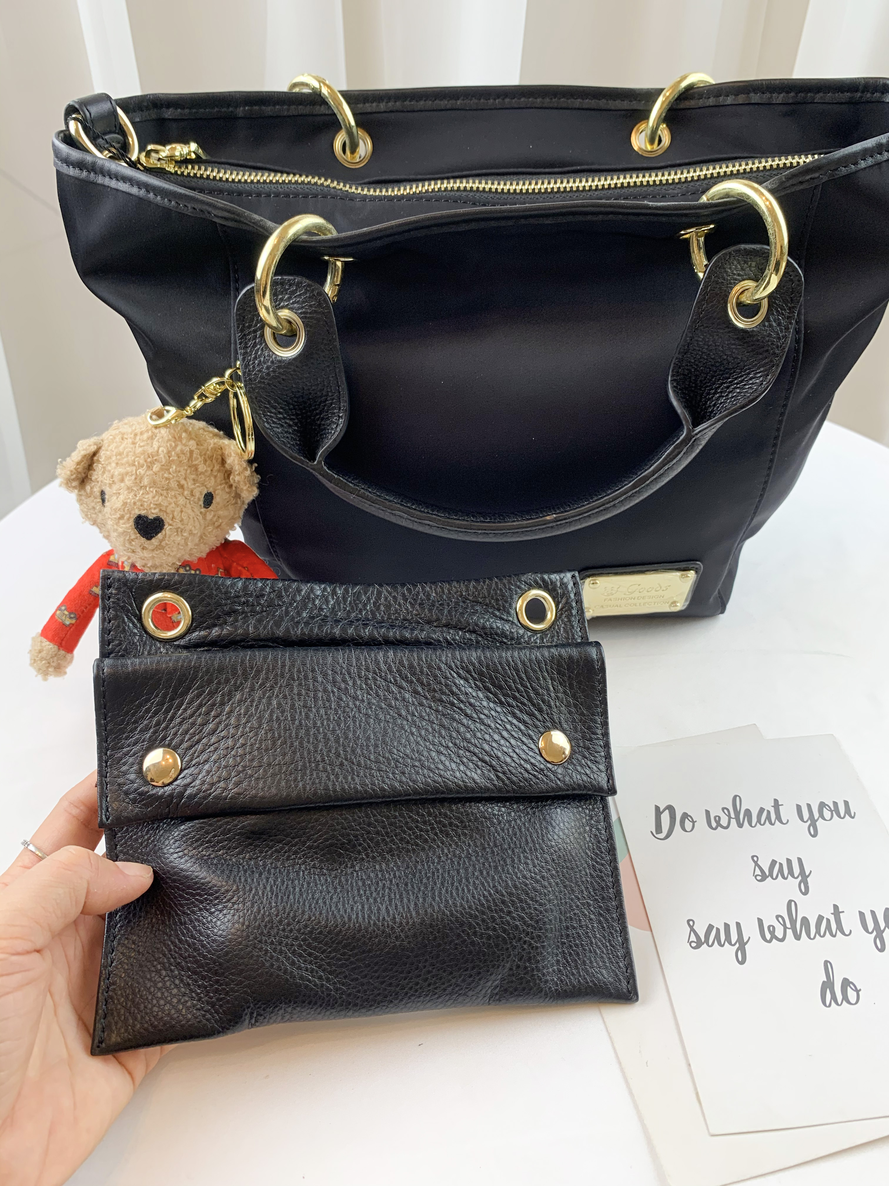 GOODS 經典黑 尼龍拼接真皮手提包 / 側背包 #2603