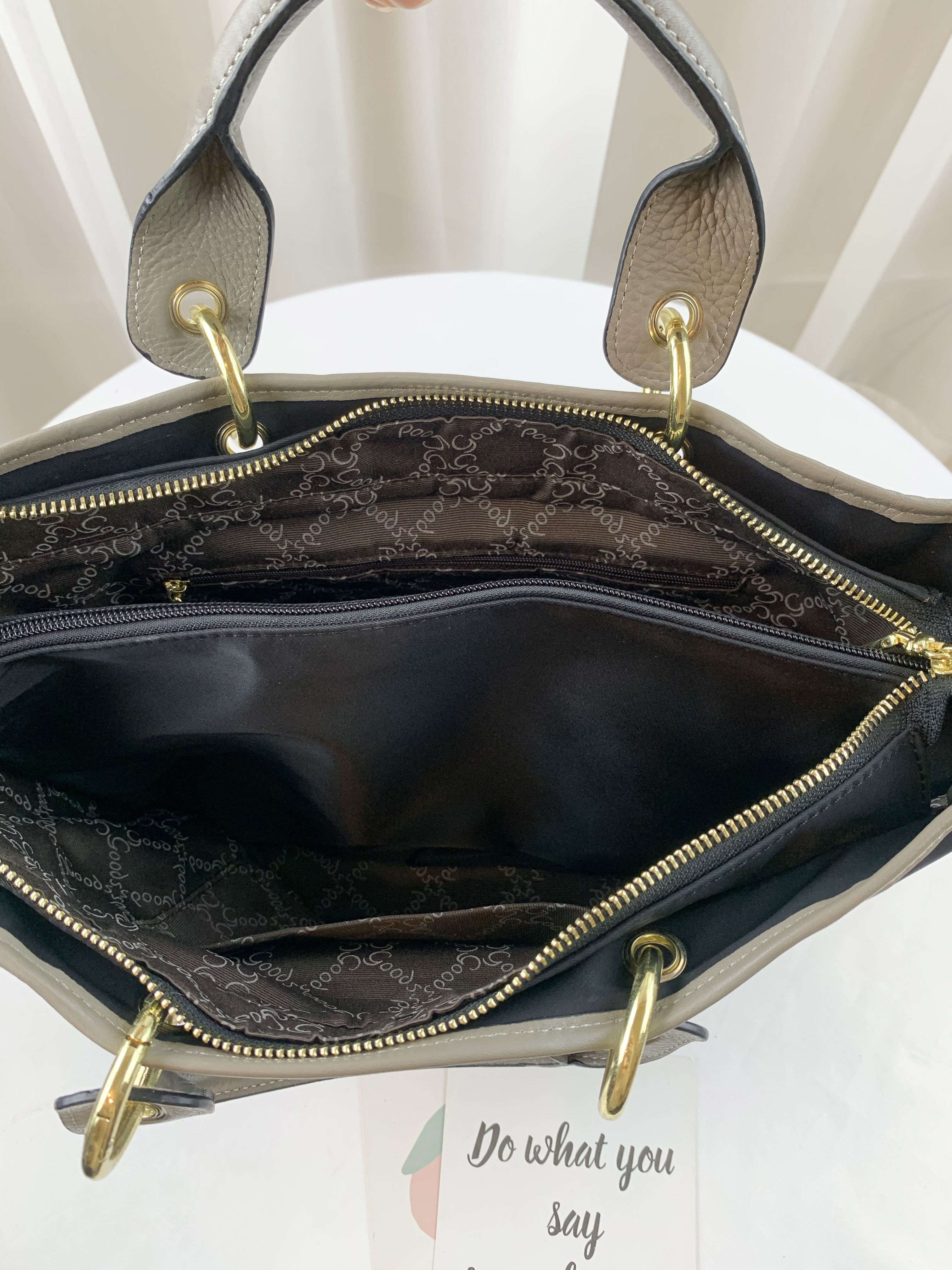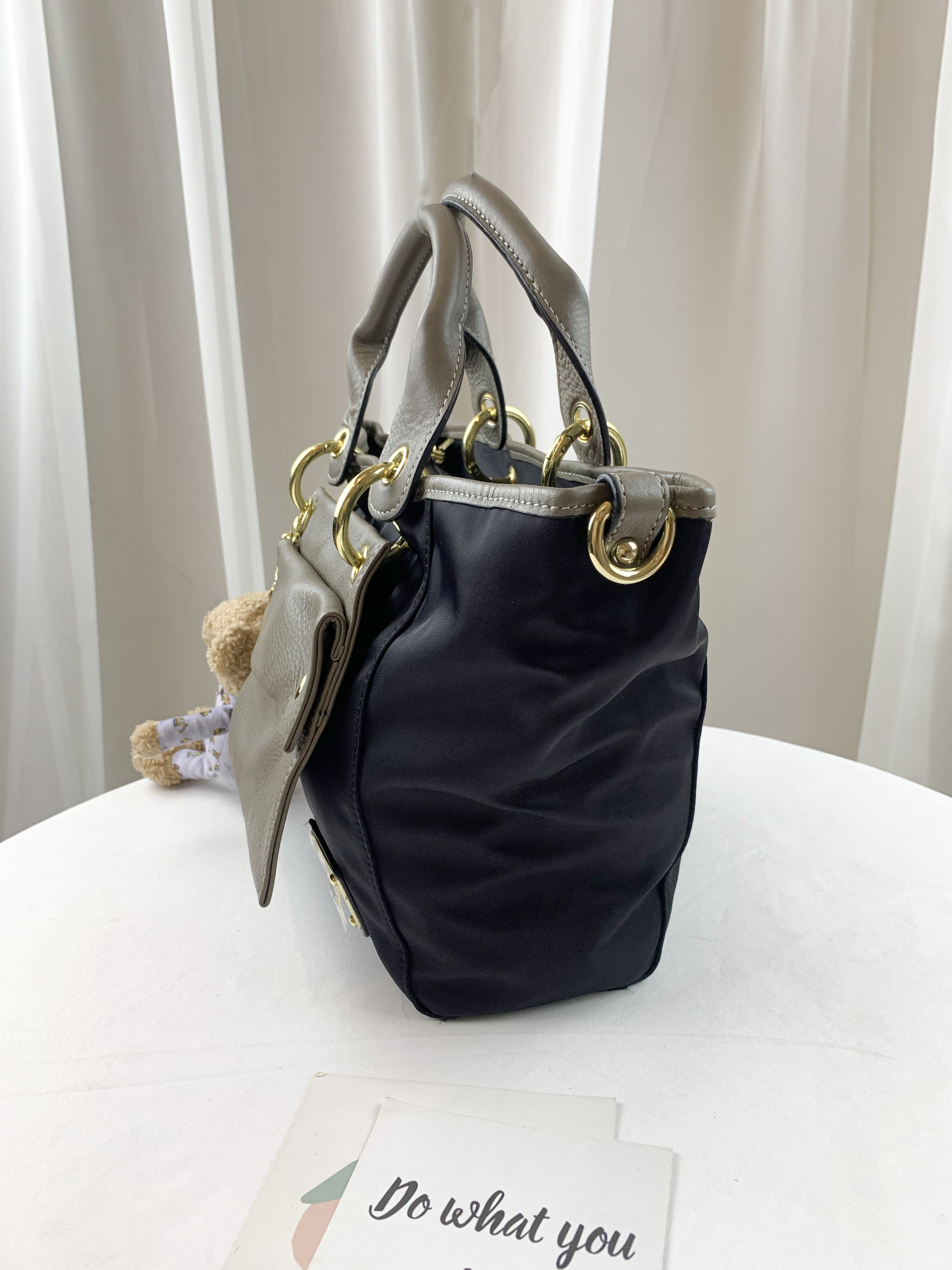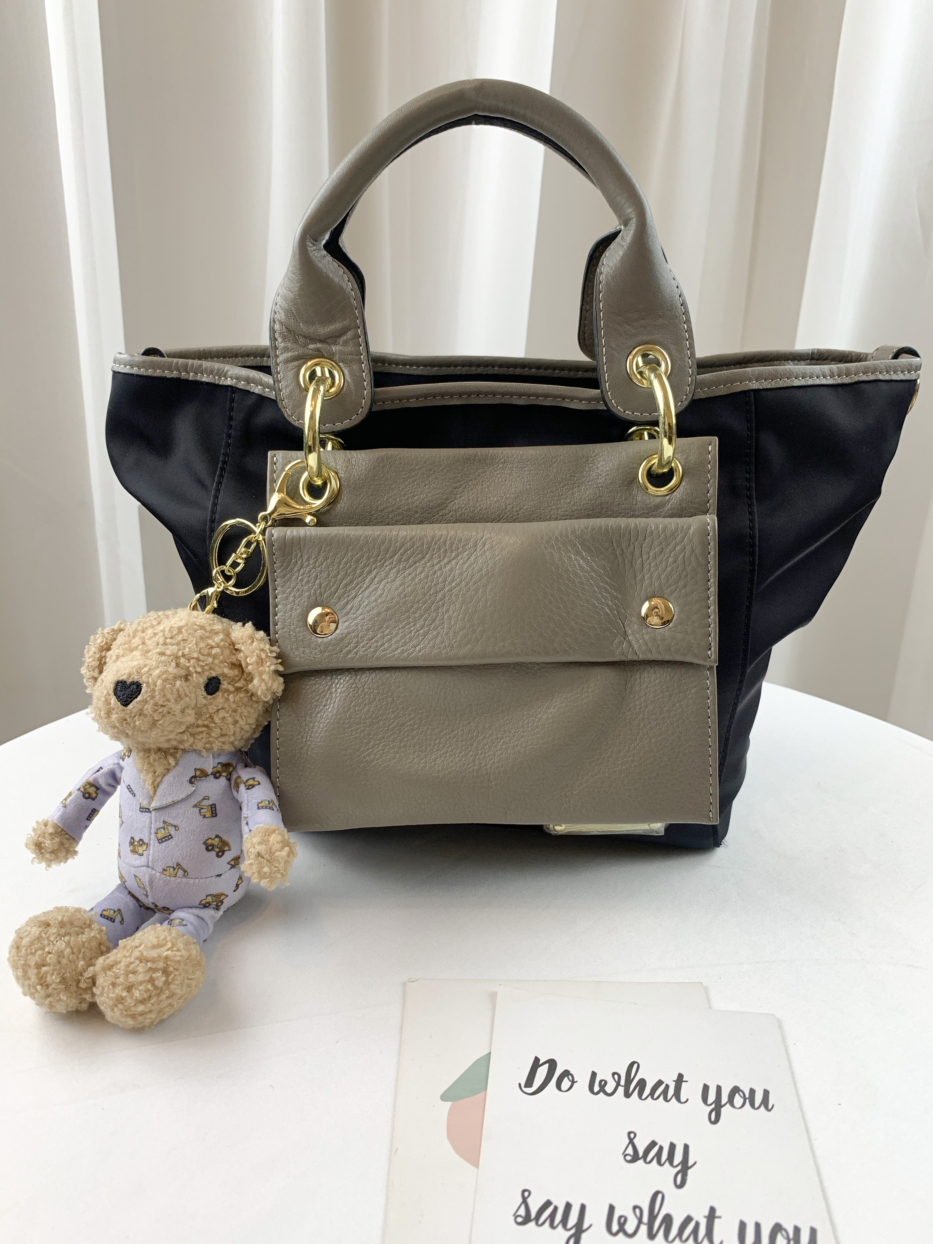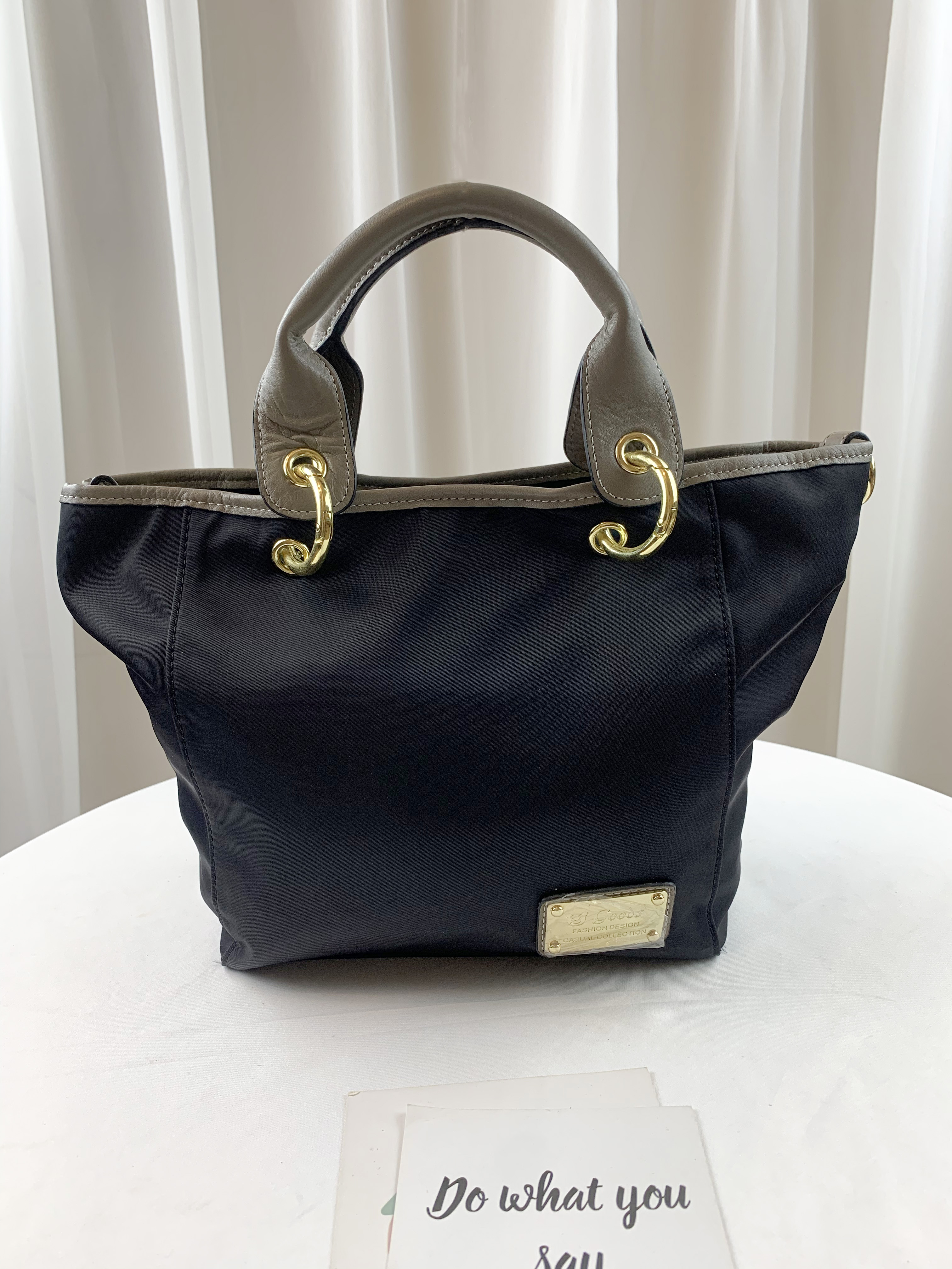 GOODS 大象灰 尼龍拼接真皮手提包 / 側背包 #2603