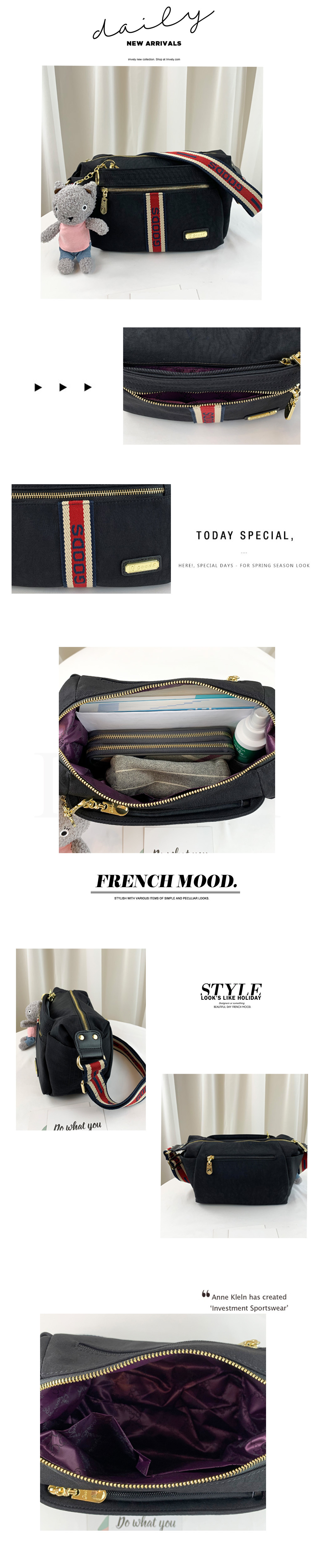 GOODS 織帶黑 水洗紋防潑水側背包 附小熊吊飾 #2617