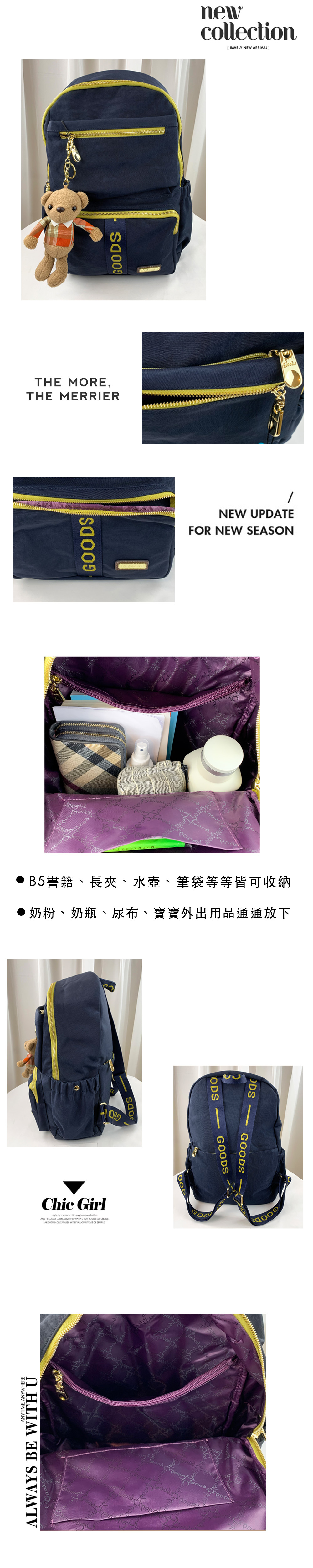 GOODS 織帶藍 拼接黃藍運動風後背包 附小熊吊飾 #2627