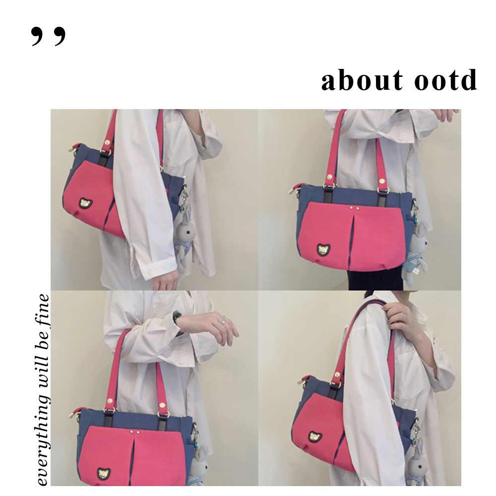 GOODS 綠桃拼色 防潑水手提包 / 側背包 附小熊吊飾 #2637