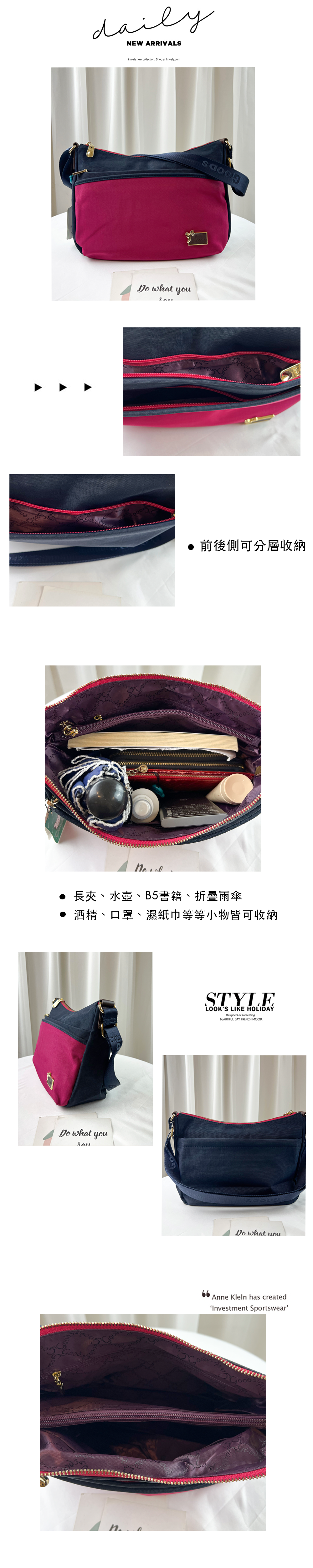 GOODS 藍桃拼色 肯尼布拼接真皮側背包 #2638