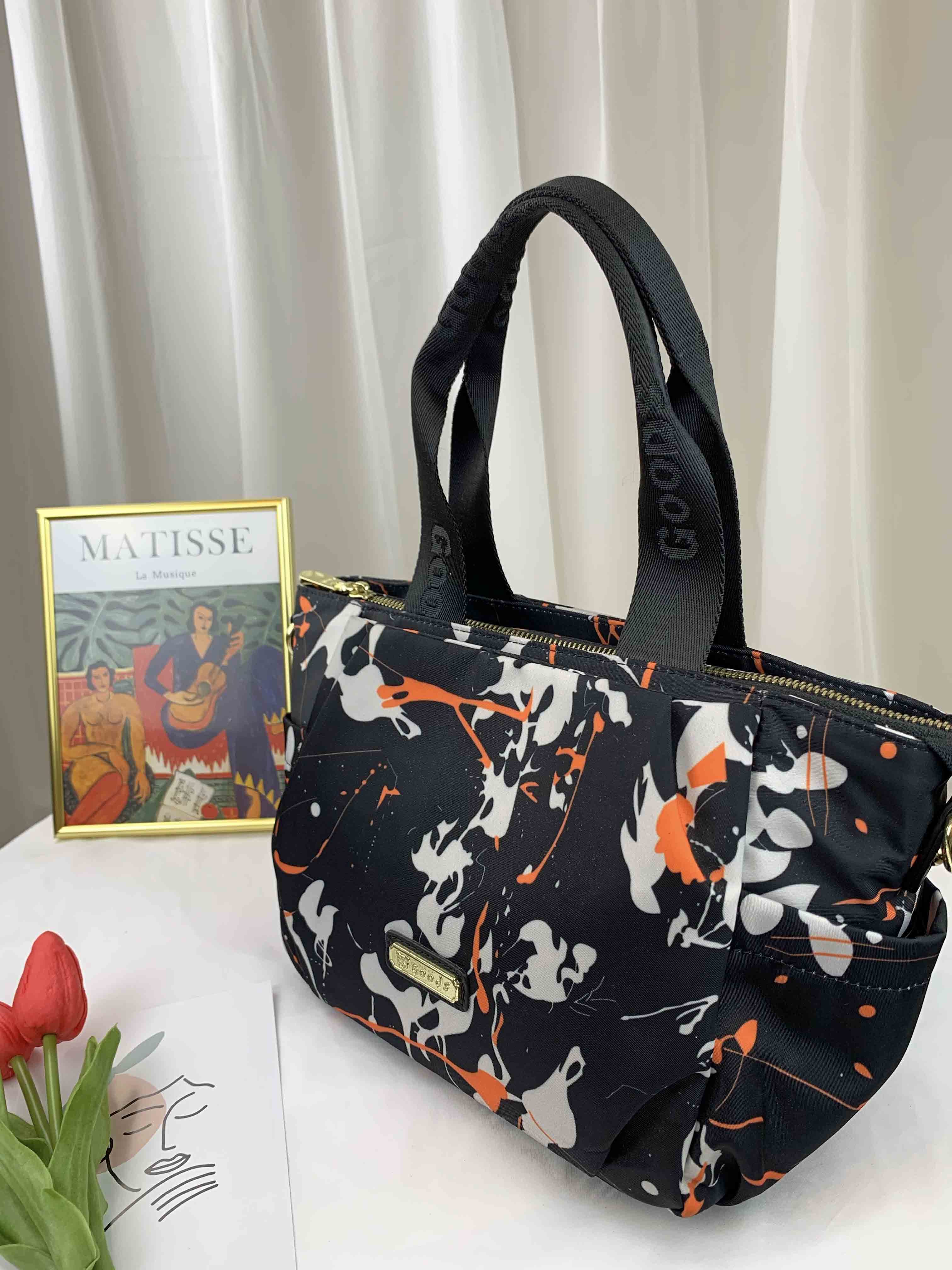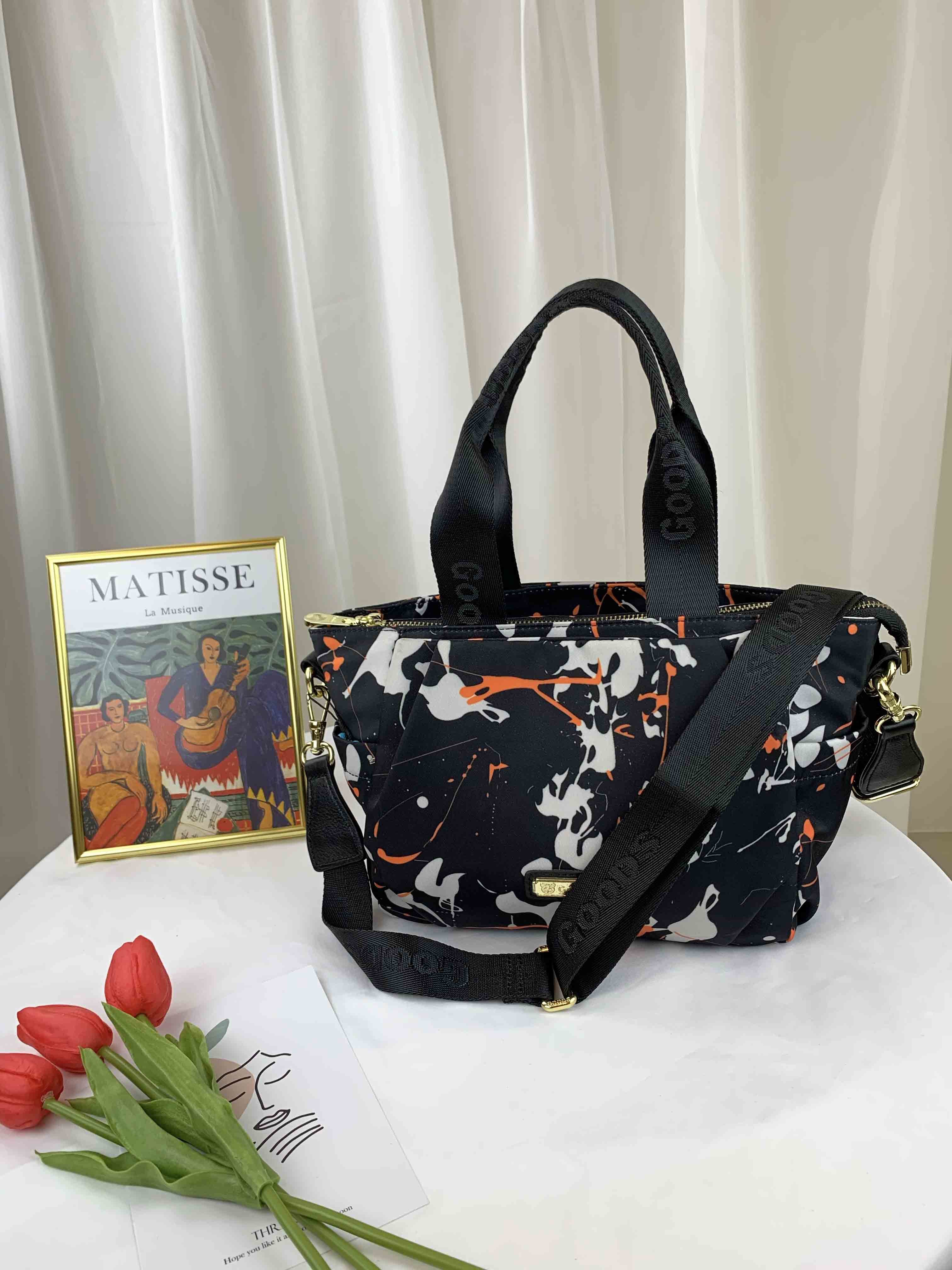 GOODS 復古潑漆黑尼龍手提包 / 側背包 #2640